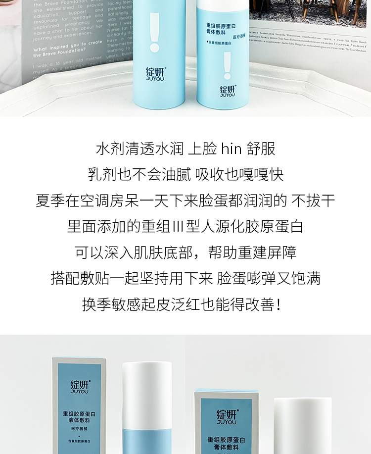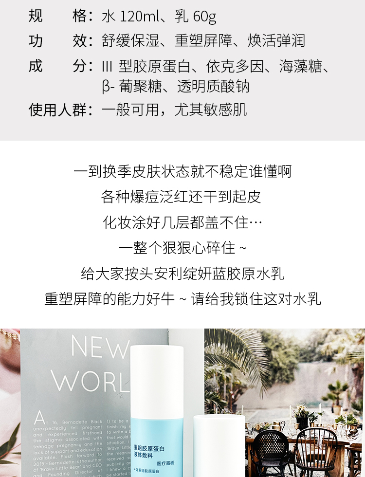 新品 绽妍重组胶原蛋白液体辅料60ml+120ml(水乳)