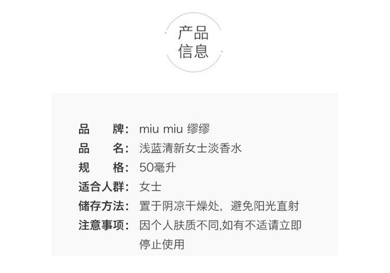 miu miu缪缪 浅蓝清新女士香水(黄盖)