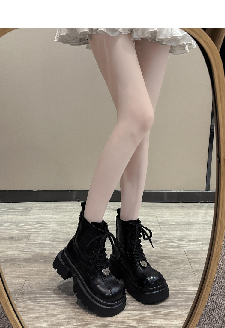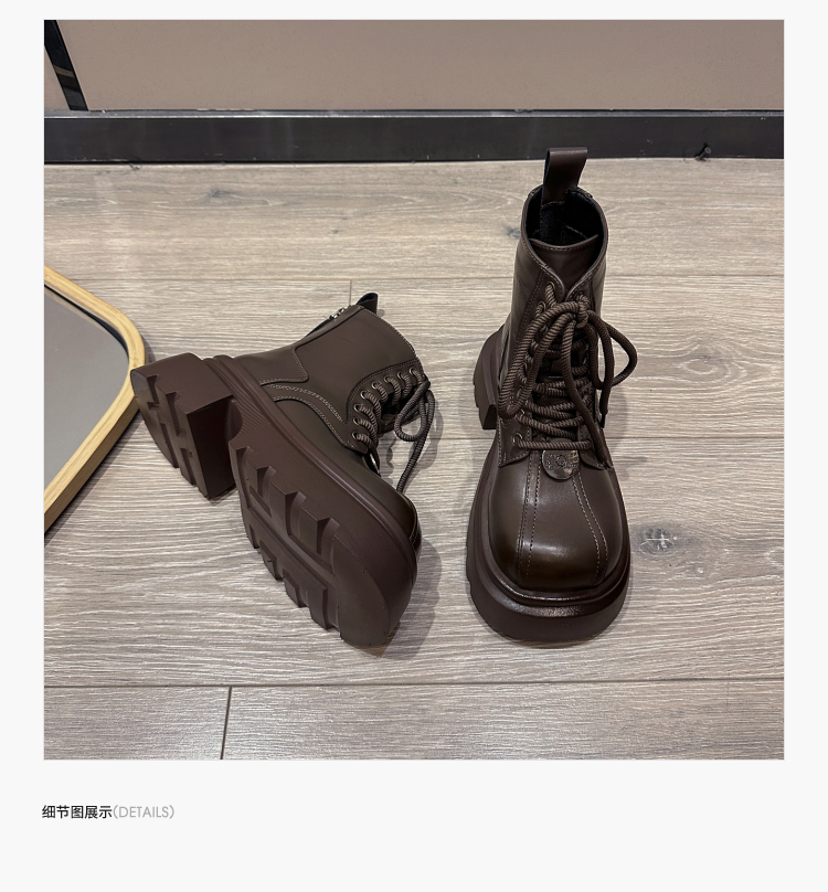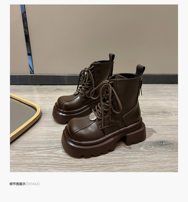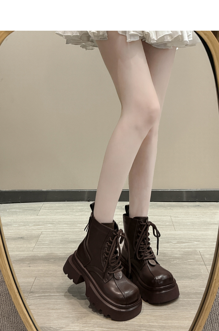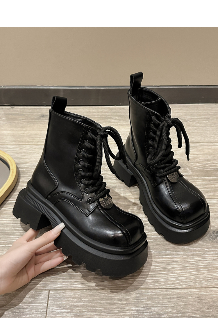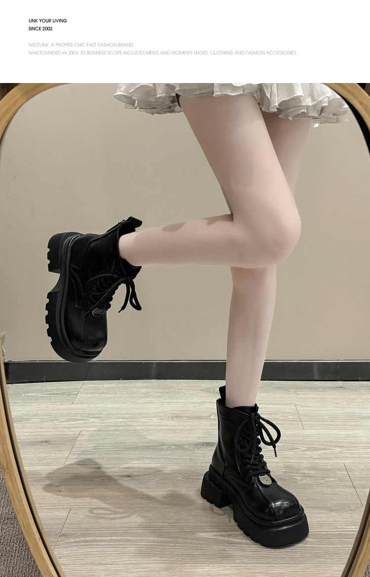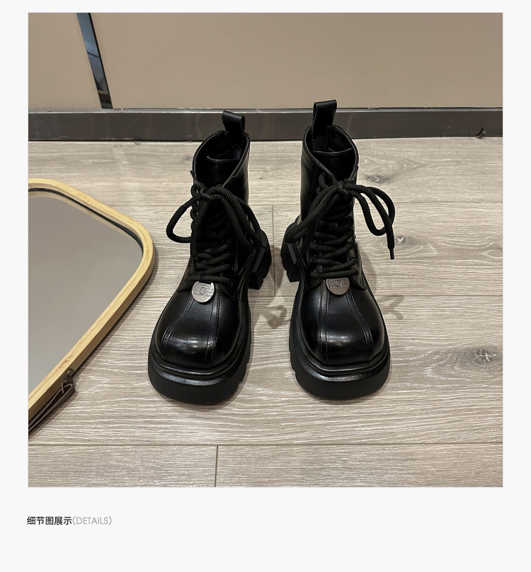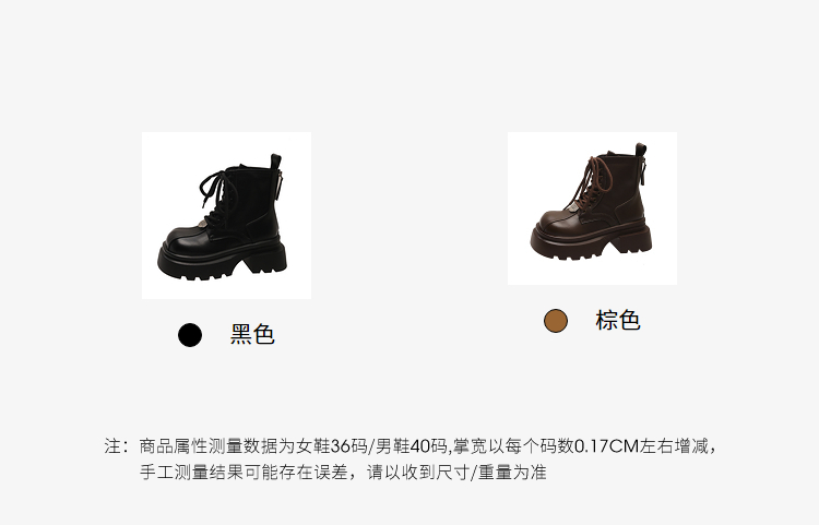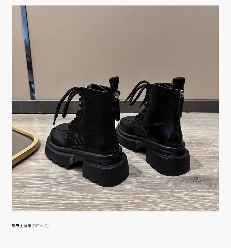 西遇增高马丁靴女新款秋冬机车靴休闲黑色小个子松糕厚底短靴V0047808