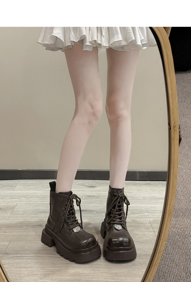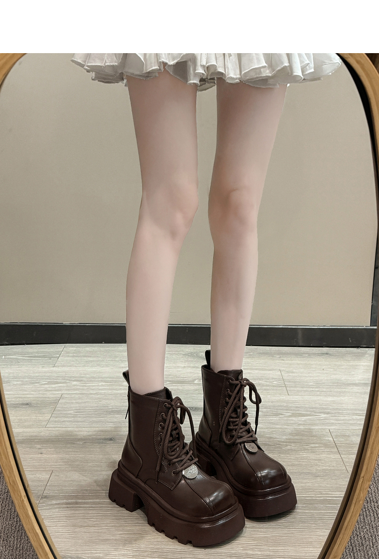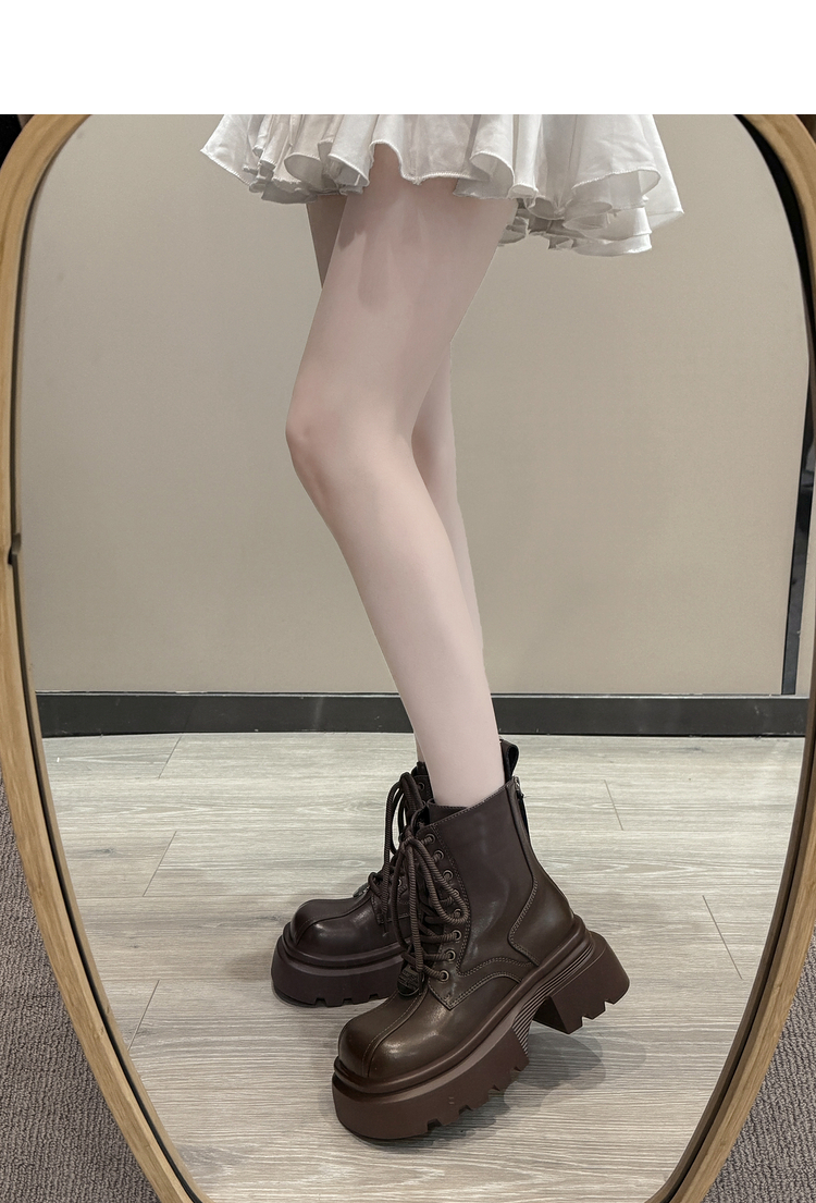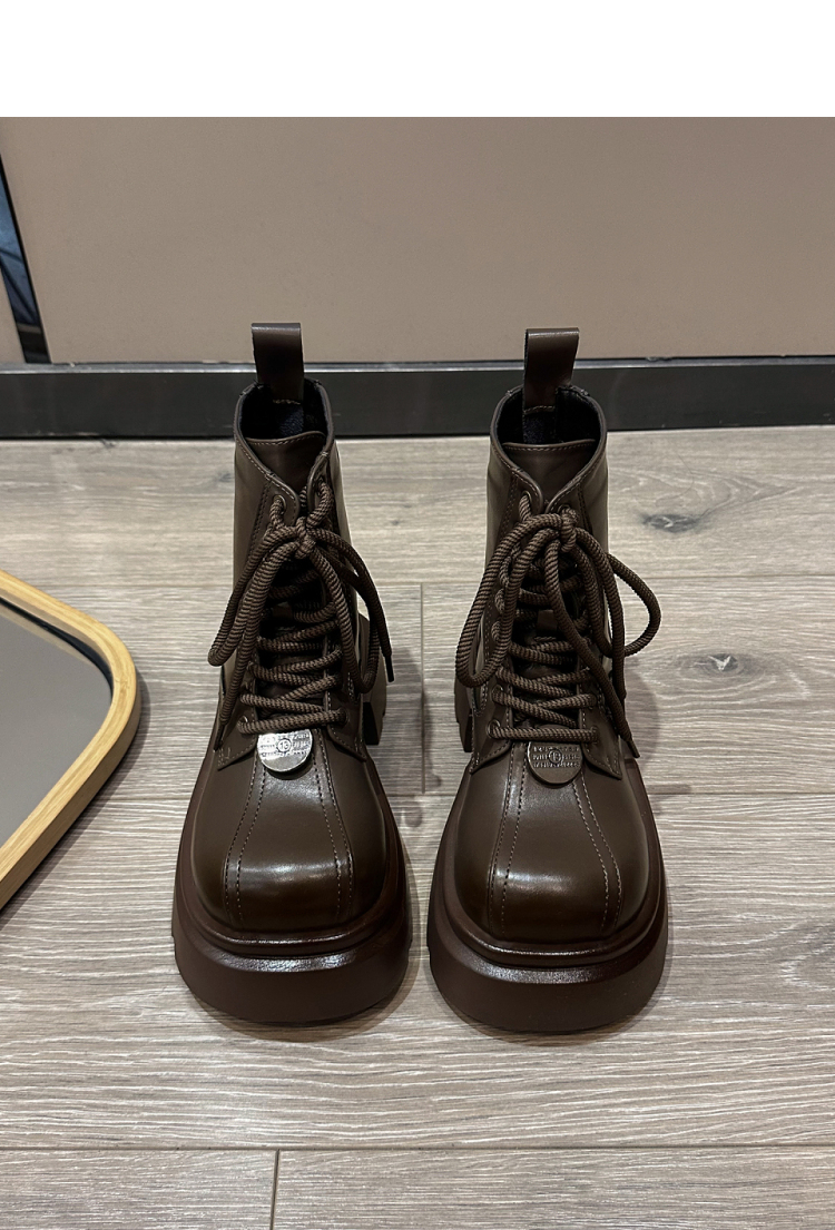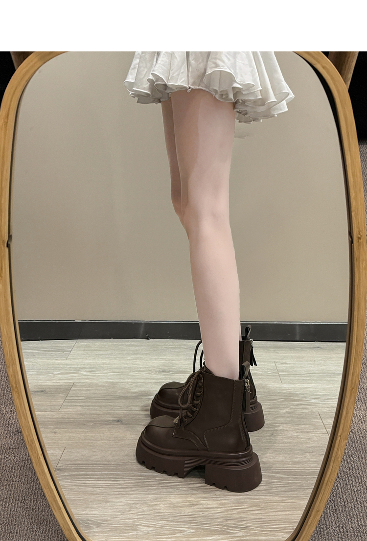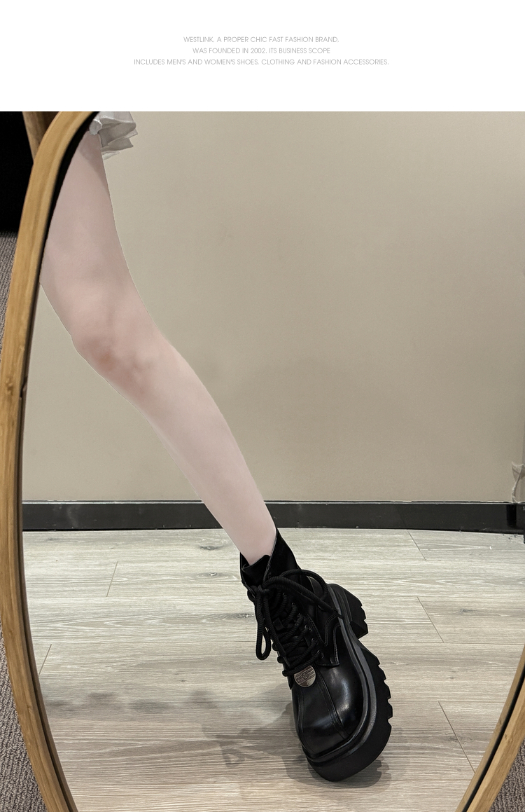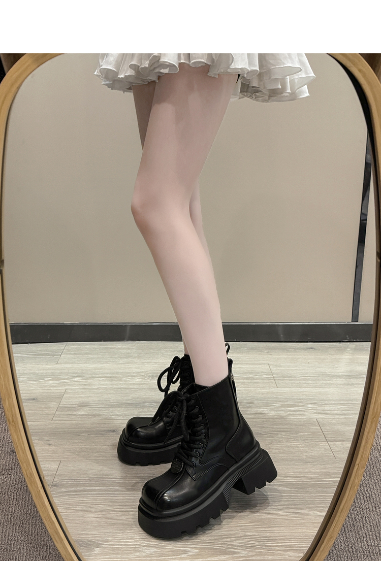 西遇增高马丁靴女新款秋冬机车靴休闲黑色小个子松糕厚底短靴V0047808