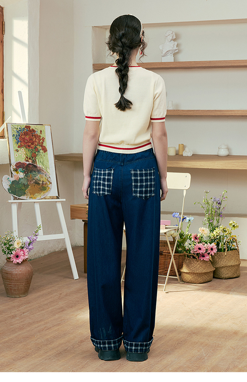 两三事 遁入花境 2025春季新款休闲拼色插肩袖印花刺绣t恤女宽松S25CT444