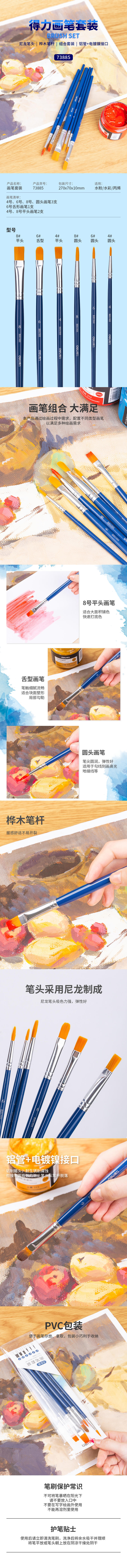 得力画笔套装73885学生(蓝色)(6支/袋)
