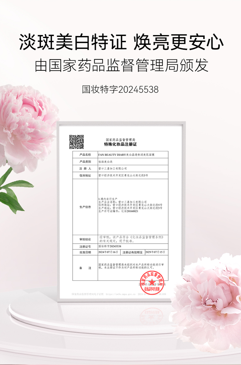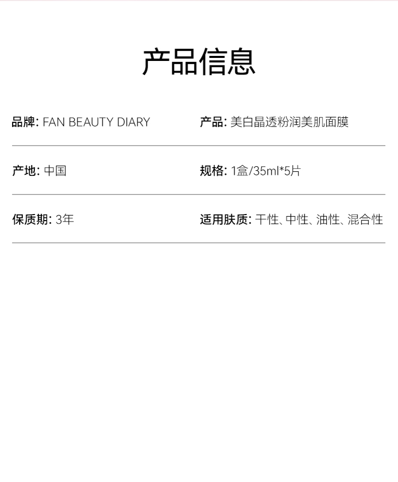 【春日膜Fan生】美白晶透粉润美肌面膜(芍药) 35ml*5片/盒