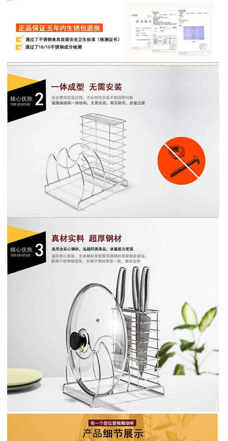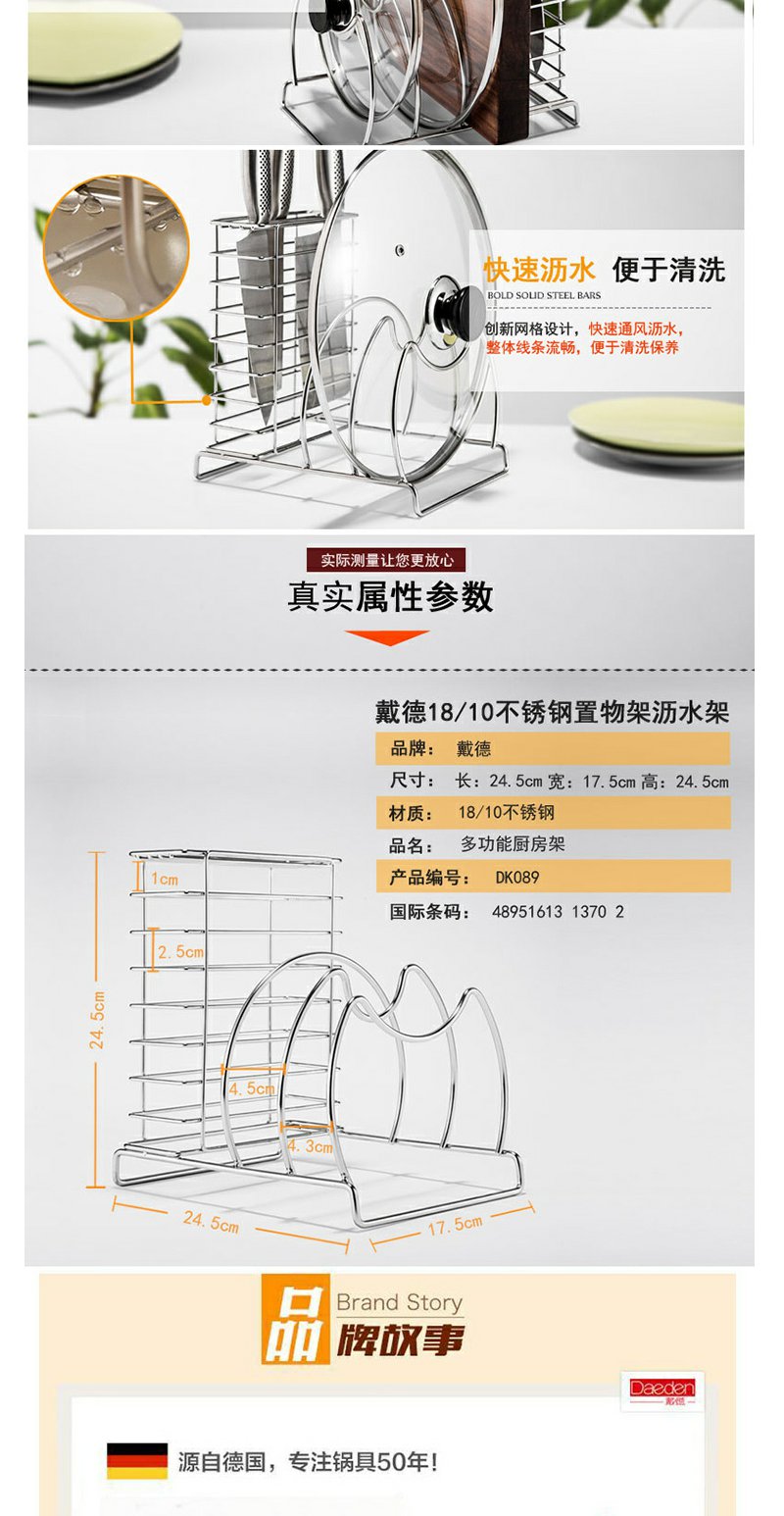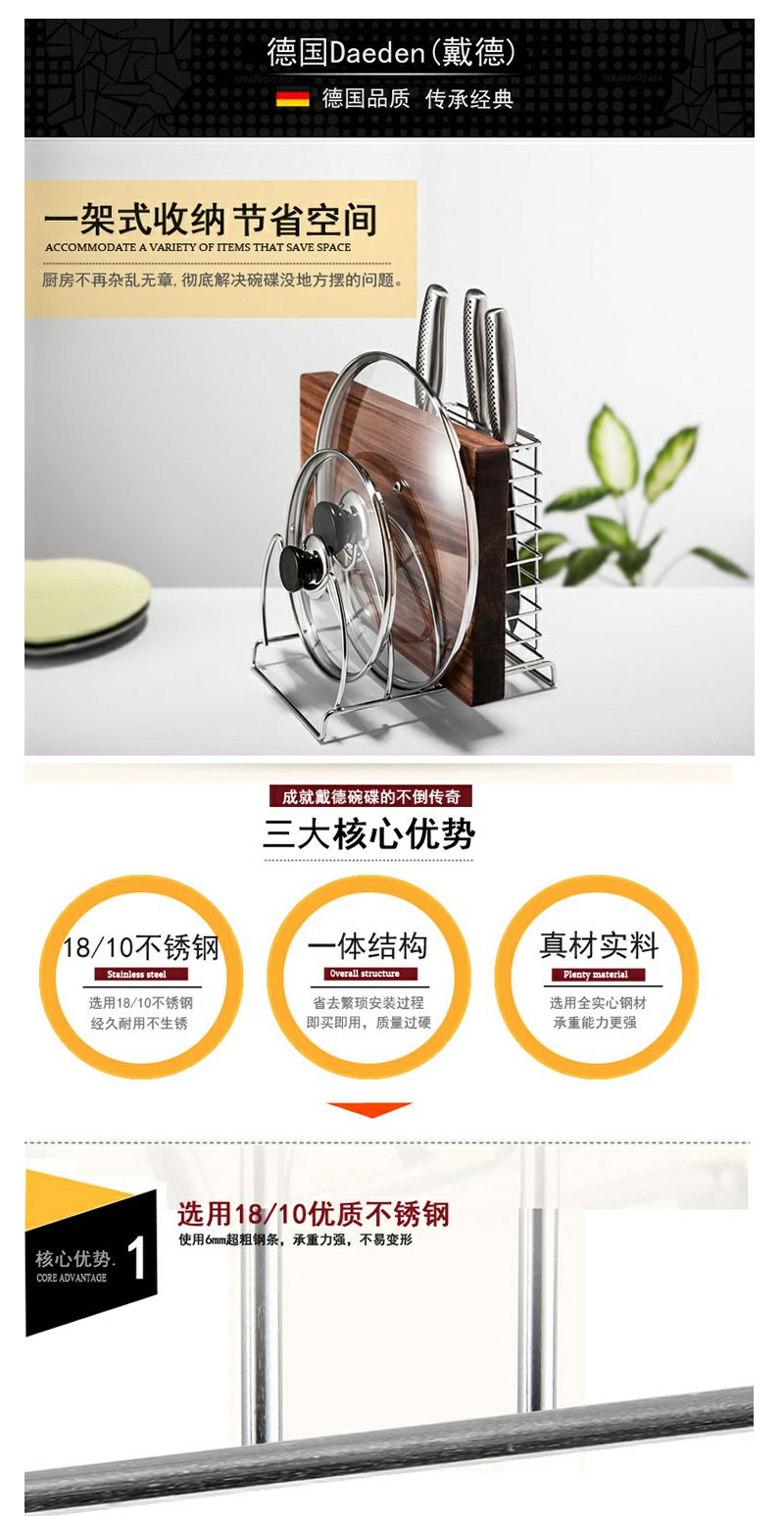德国戴德 不锈钢多功能厨房架承重防滑刀架玻璃锅盖菜板收纳架 DK089