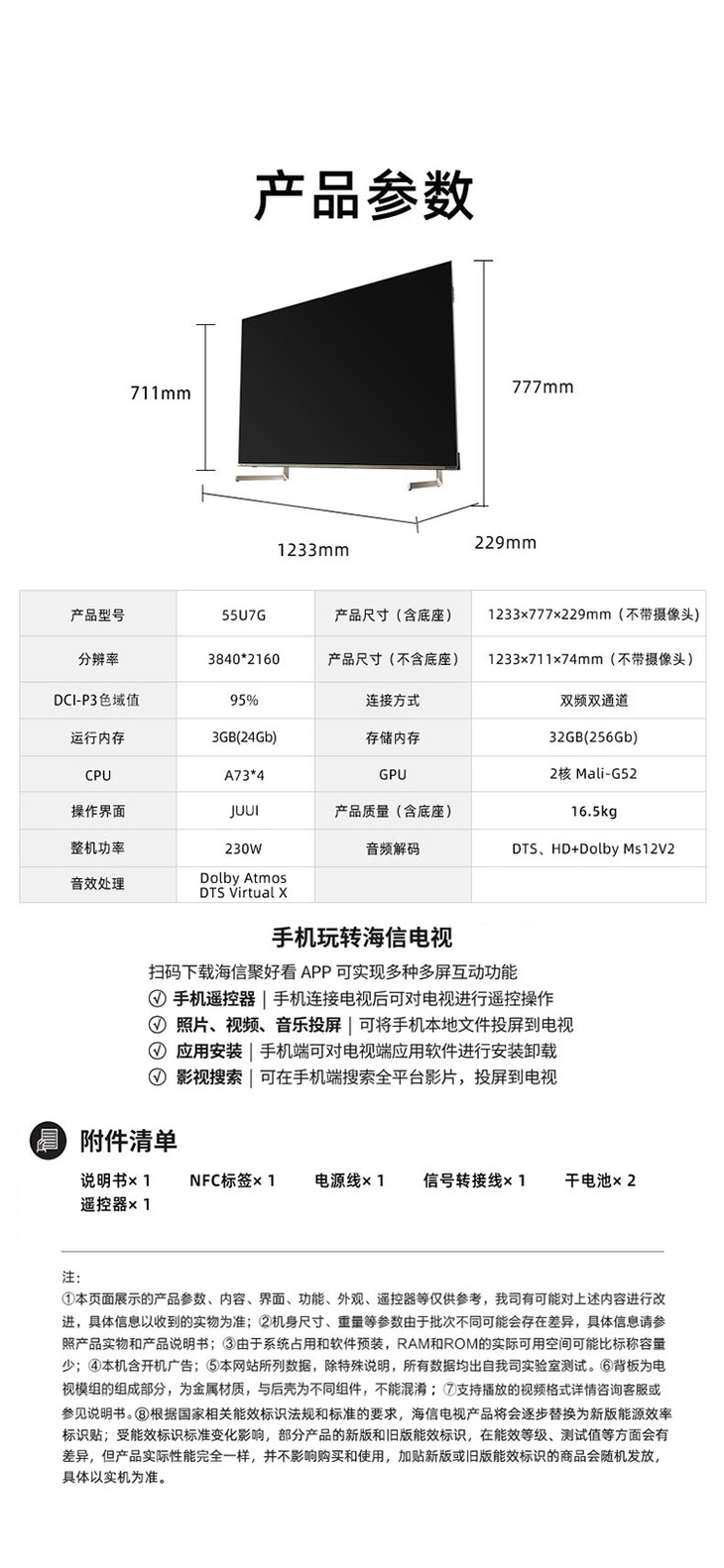 海信(Hisense) ULED120Hz电视 55英寸 信芯U+超画质芯片 55U7G 全阵列动态背光