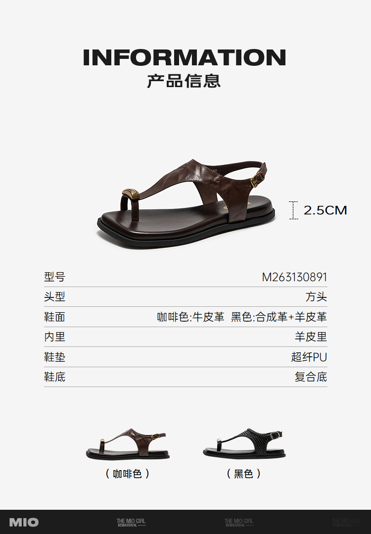 【上新】MIO米奥老钱风夹脚凉鞋女2026夏新款法式方头平底单鞋外穿人字拖M263130891
