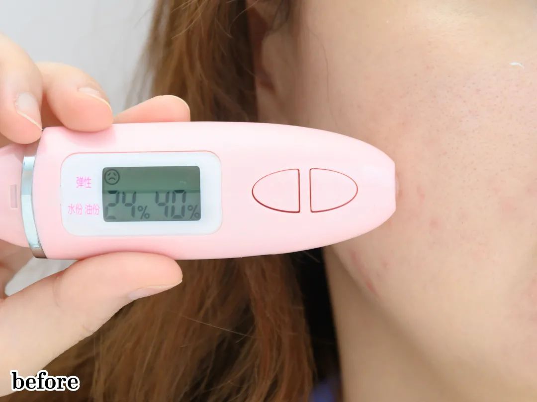 就发现防晒产品的防水膜没有被洗掉,擦干以后对比一下,粉底还是很牢固地待在皮肤上,除了粉底和防晒以外的其他彩妆基本被清洗干净。