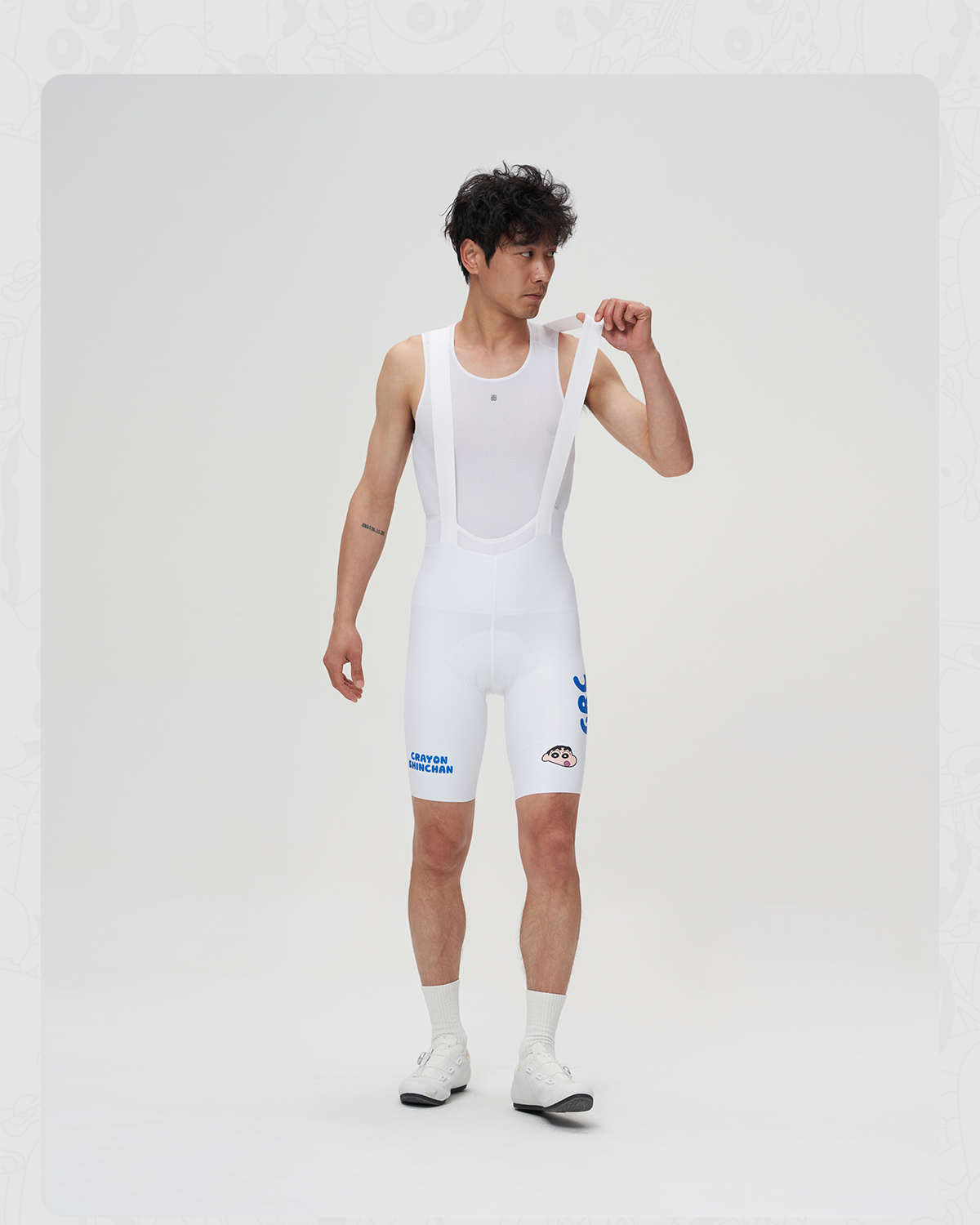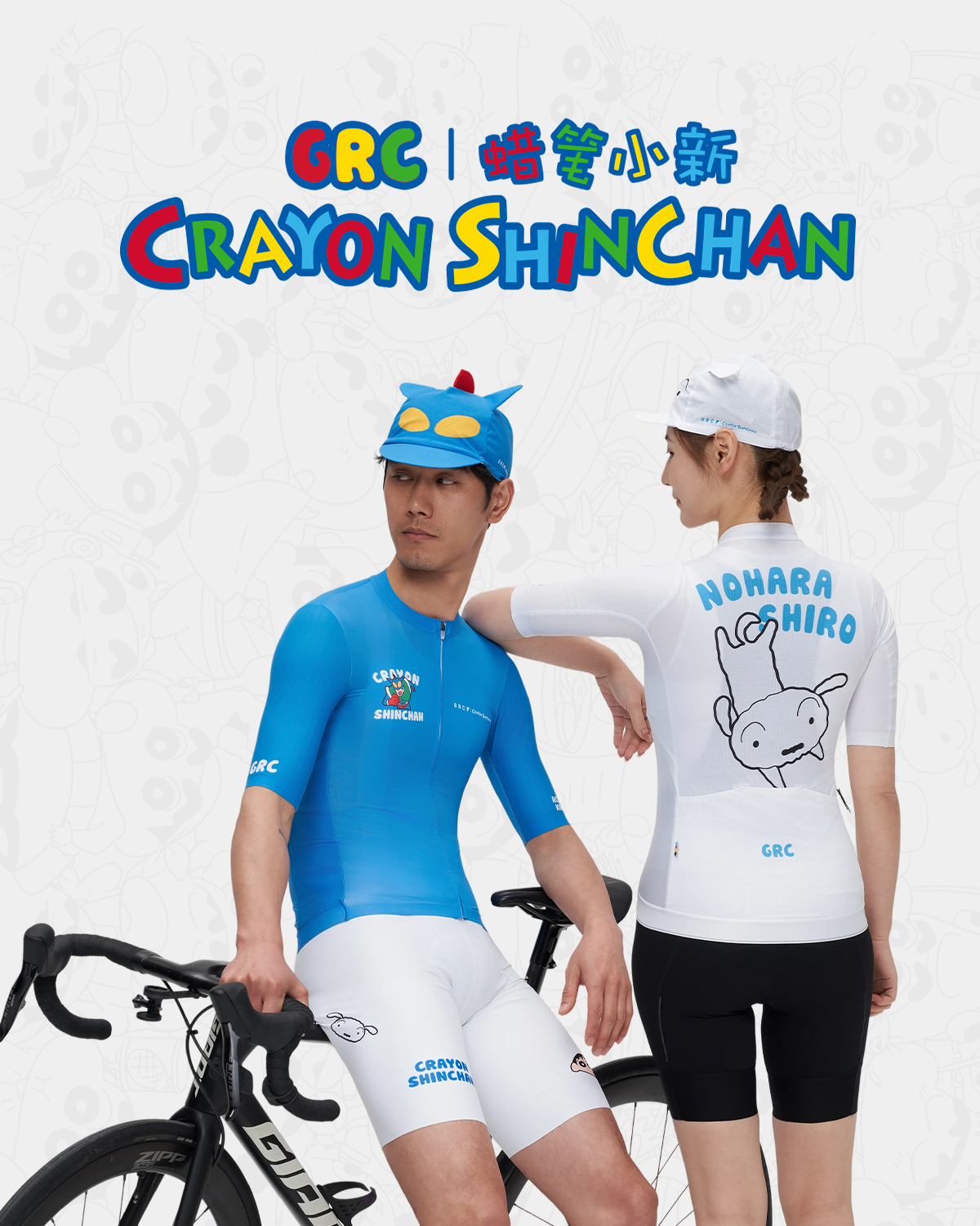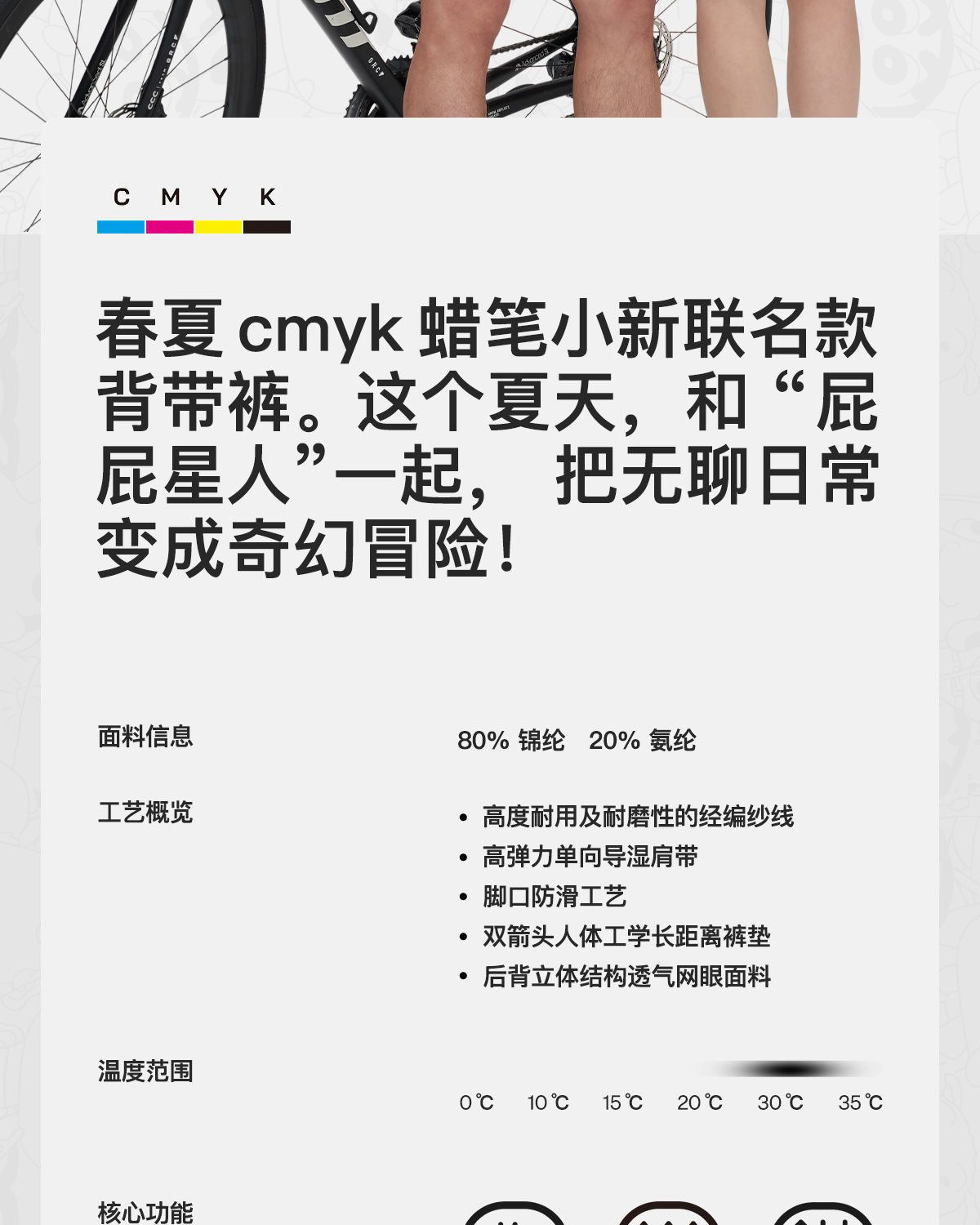 GRC桀骜无尽春夏新款骑行裤蜡笔小新联名双箭头骑行服背带短裤男