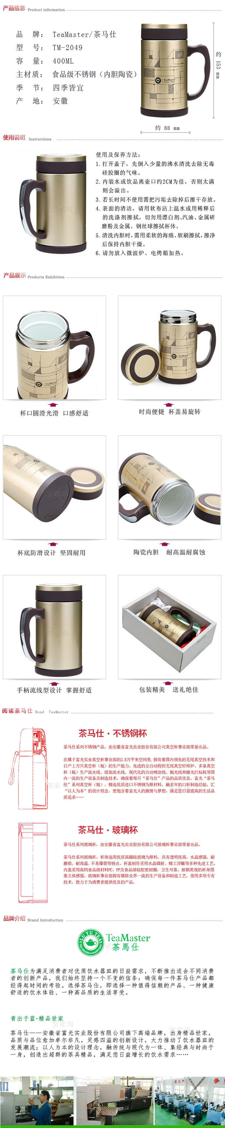 茶马仕格调生态杯(瓷胆)TM-2047