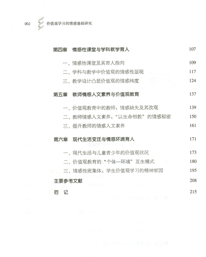 关注人的价值观状况,重视对人尤其是儿童青少年的价值观教育和引导,既是当代学校教育面临的紧迫任务和复杂挑战之一,也是教育领域回应时代和人的成长需求的重要方式之一。本书直面当代儿童青少年的成长需要和学校价值观教育现状,基于情感教育理论观点和旨趣,对价值观与人的关系进行哲学考察,并基于人的生命和存在现象立论“情感作为价值观形成的基础”这一理论观点和命题,本研究关注具体人与特定情境之间的互动,并由此阐发学校在儿童青少年价值观教育中的变革和努力的方向。