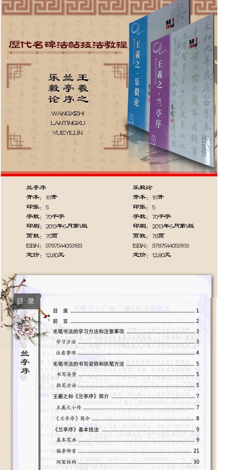 正版 王羲之 乐毅论-王羲之 兰亭序 (2册) 历代名碑法帖技法教程系列 米骏 行书楷书书法教材书籍