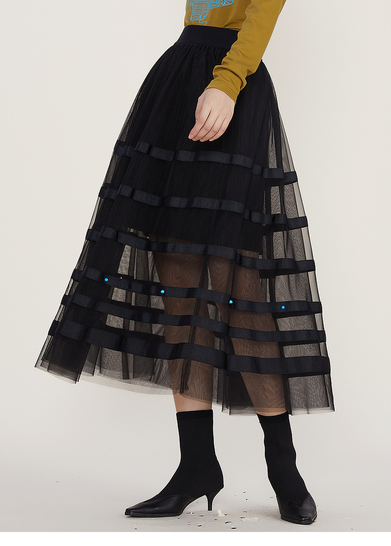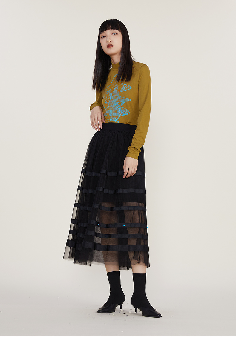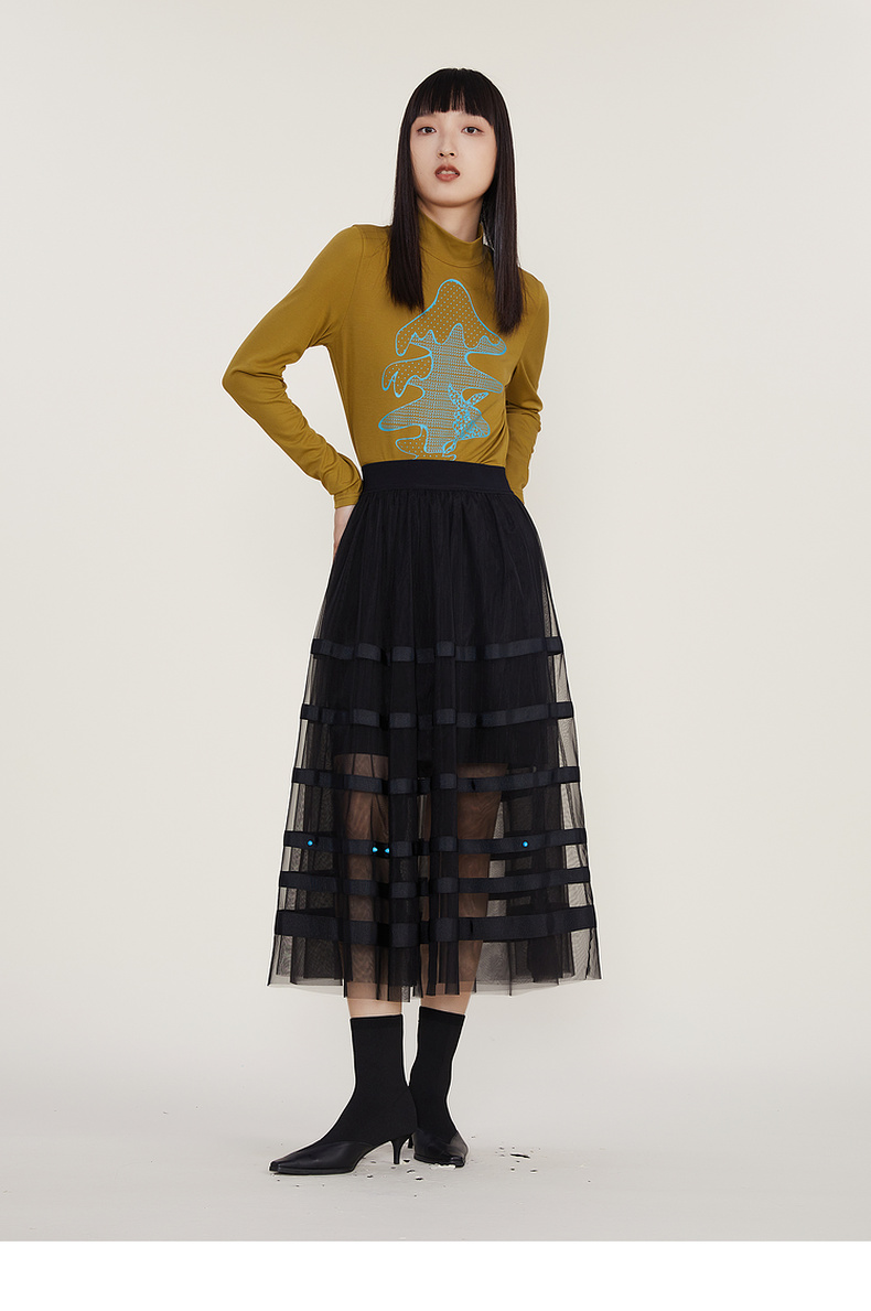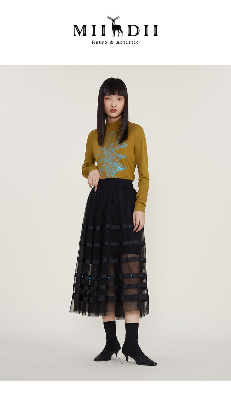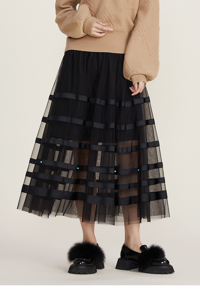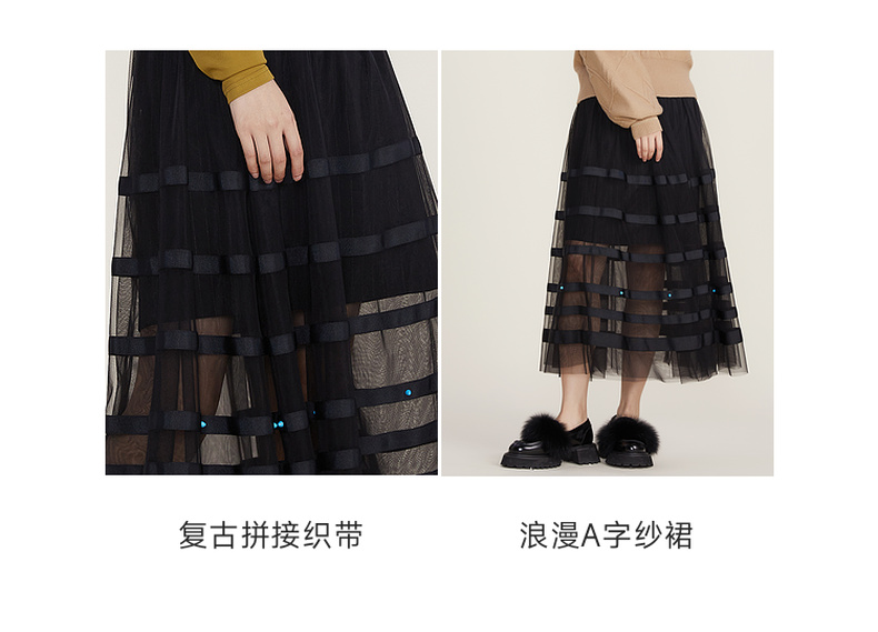 谜底2022冬季新款半身裙女复古文艺长款A型网纱半裙224MB1661