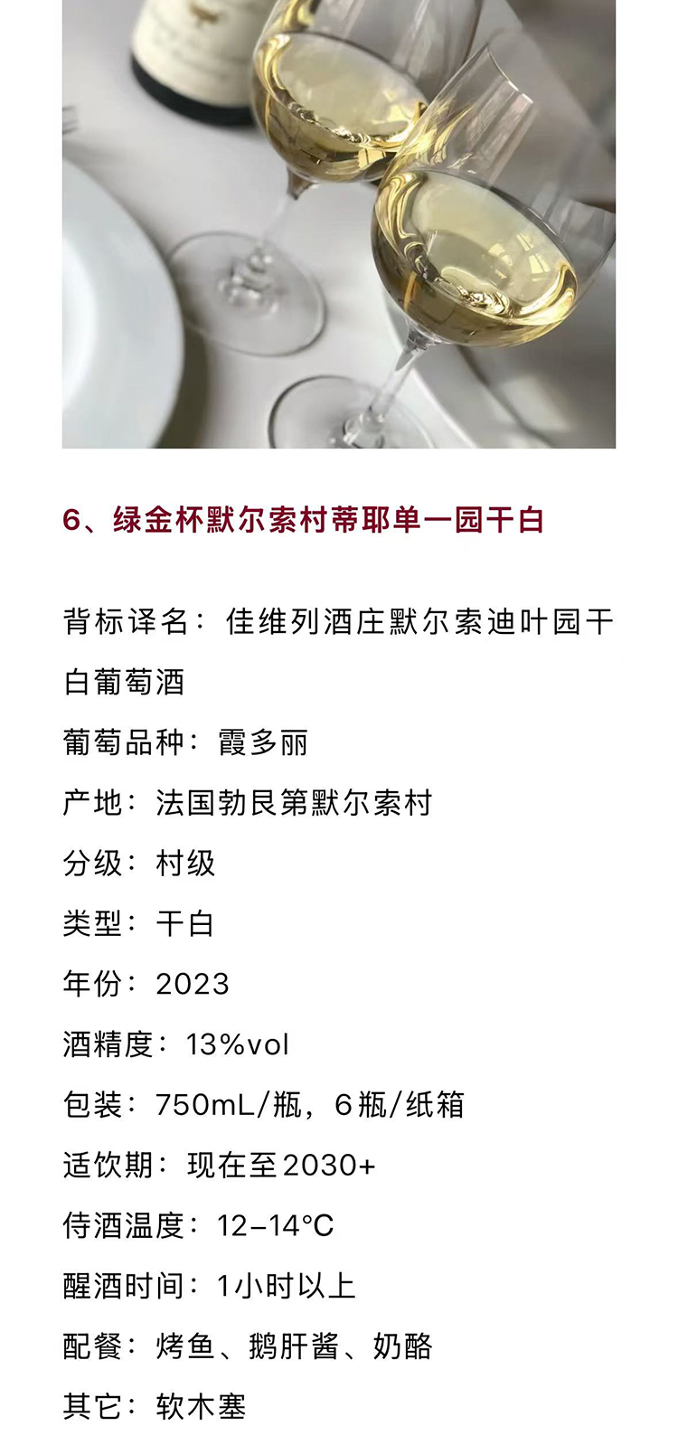 【圈粉无数】法国勃艮第默尔索村2023年绿金杯蒂耶单一园干白/2020年绿金杯科霍霞多丽干白