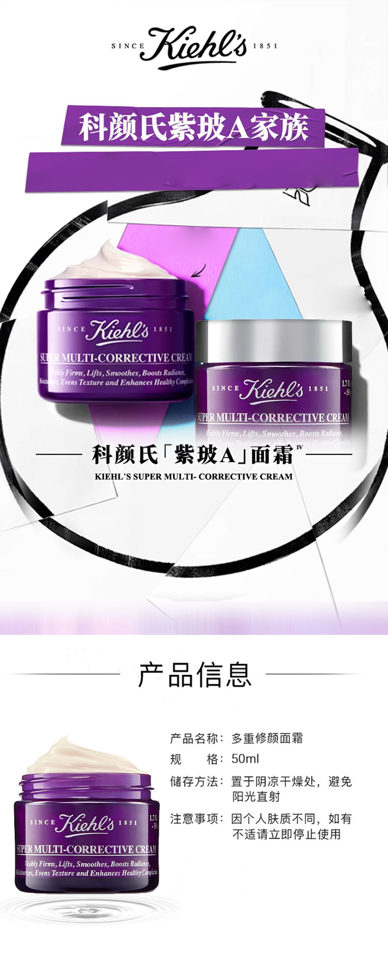 【春日焕新】KIEHL'S科颜氏紫玻A面霜50ml 一般贸易