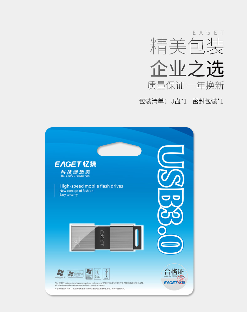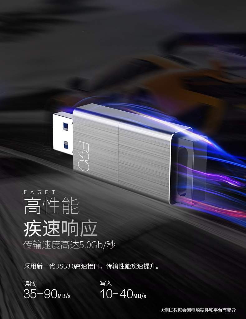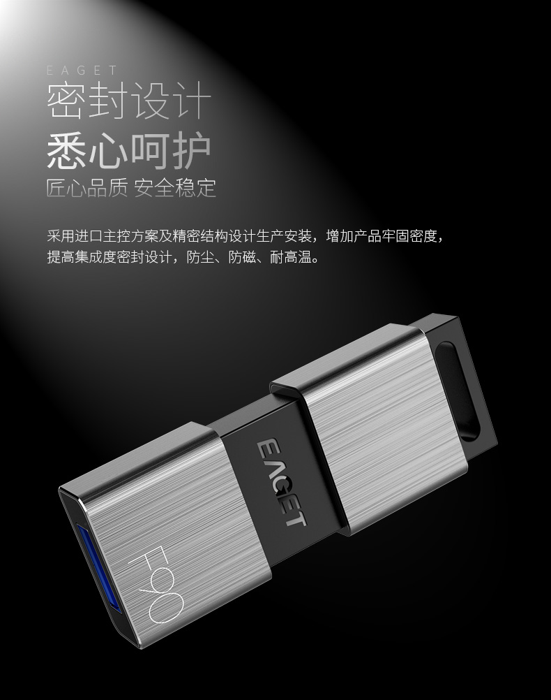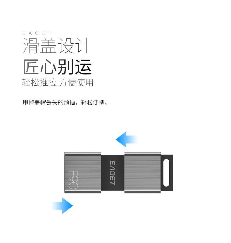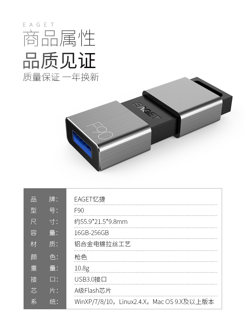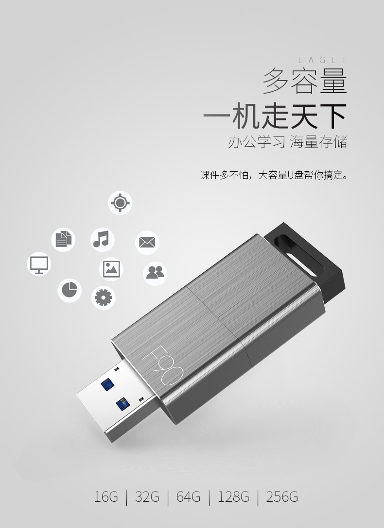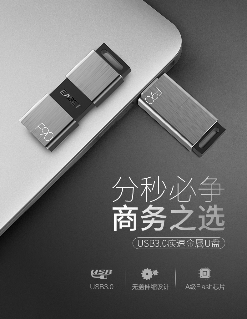 忆捷 F90 U盘 USB3.0高速金属推拉式车载商务优盘 防尘 防水 防震 128GB