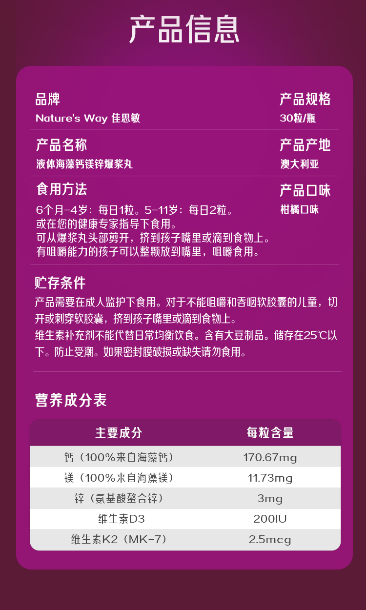 【日常好物丨Nature's Way佳思敏学生骨力佳赖氨酸➕海藻钙系列】提取多种微量元素,补充人体所需