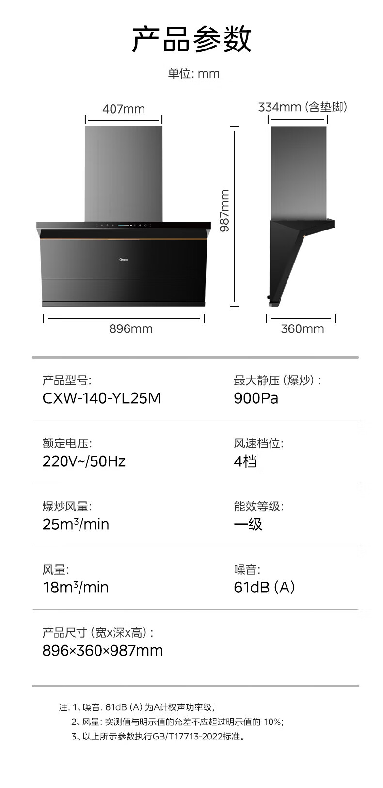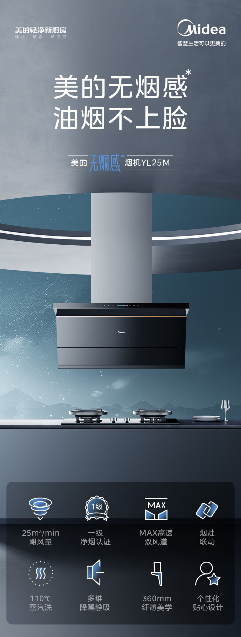 M侧吸式25立方高温蒸汽洗CXW-140-YL25M 美的抽油烟机 免费上门测量确认后发货