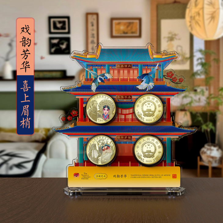 甚至可以将生角币、旦角币和净角币一起带走!摆件以戏台形状设计,不仅契合该系列纪念币主题,漂亮大气!、