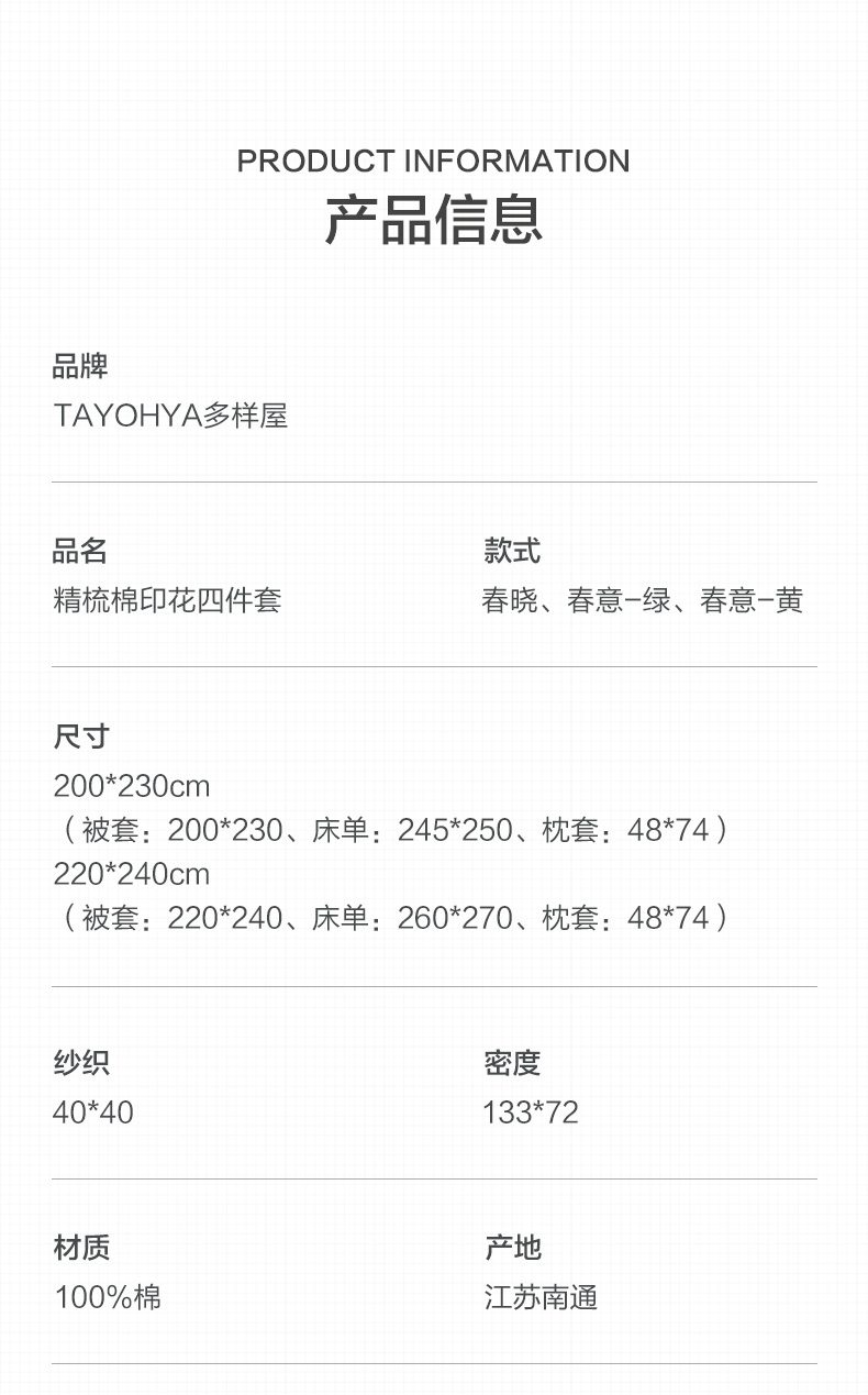 【多样屋专柜】-多样屋精梳棉印花四件套床上用品四件套全棉纯棉床单被套2022新款
