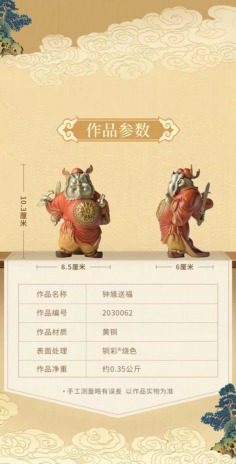铜师傅《钟馗送福》办公室桌面工位钟馗摆件 新年吉祥物送朋友同事
