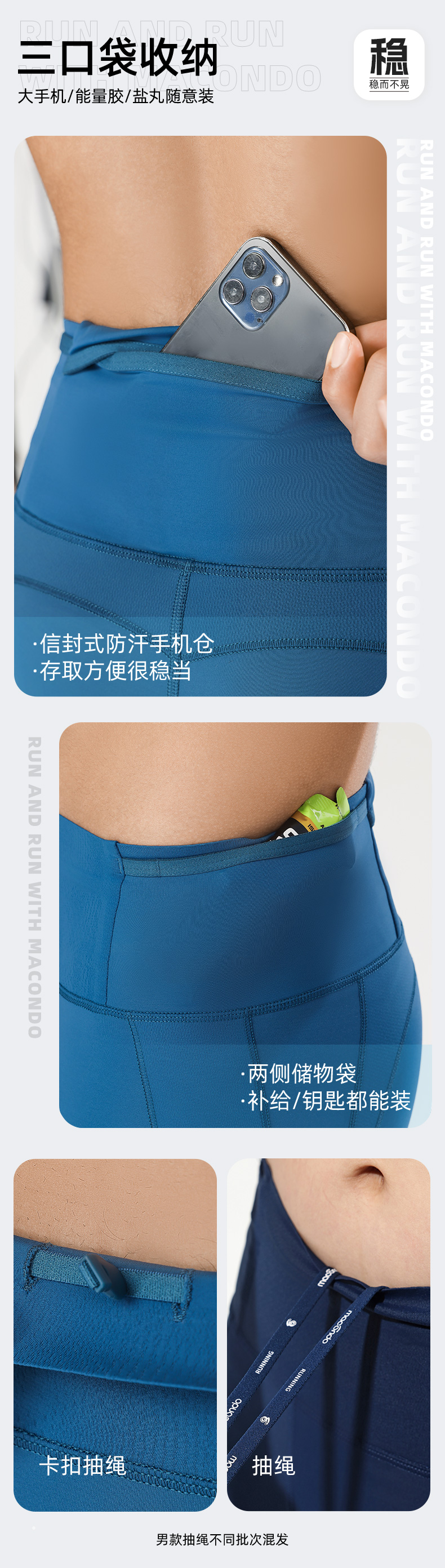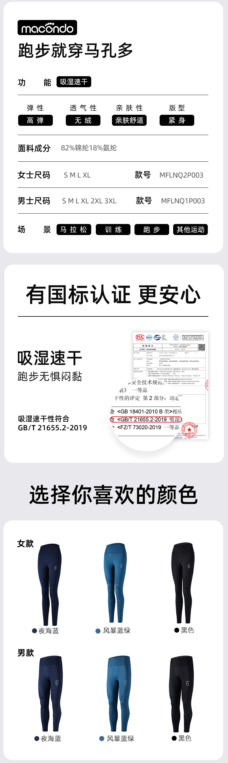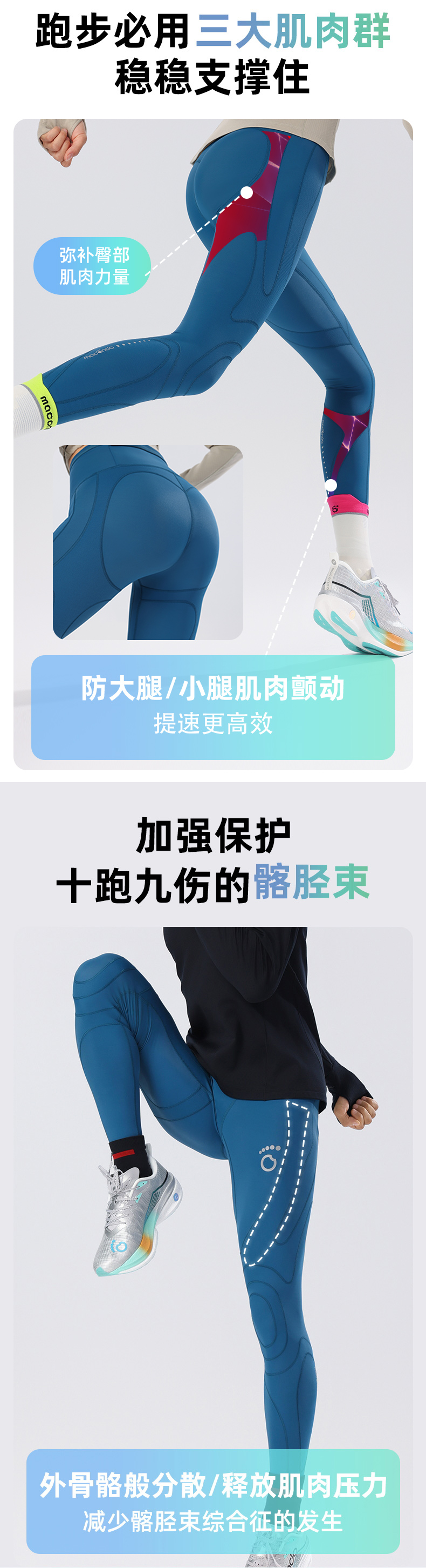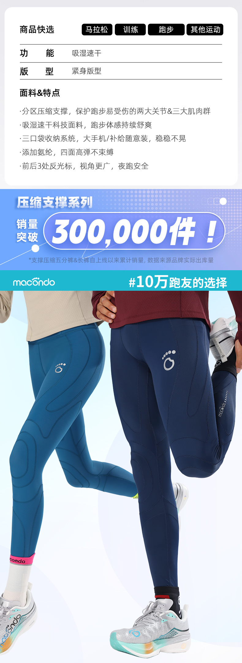 春秋马孔多男女压缩支撑长裤 分区压缩保护2大关节&3大肌肉群 吸湿速干 畅跑舒爽 四面高弹 3口袋收纳大手机/补给 3处反光标 夜跑安全