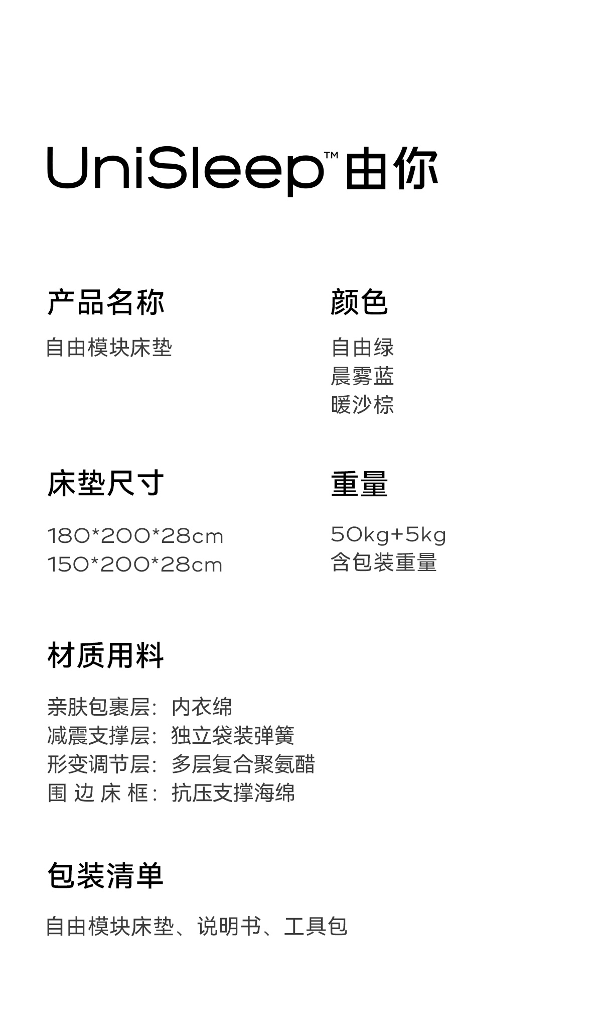 【包邮】UniSleep自由模块床垫 分区 高端床垫弹簧 静音