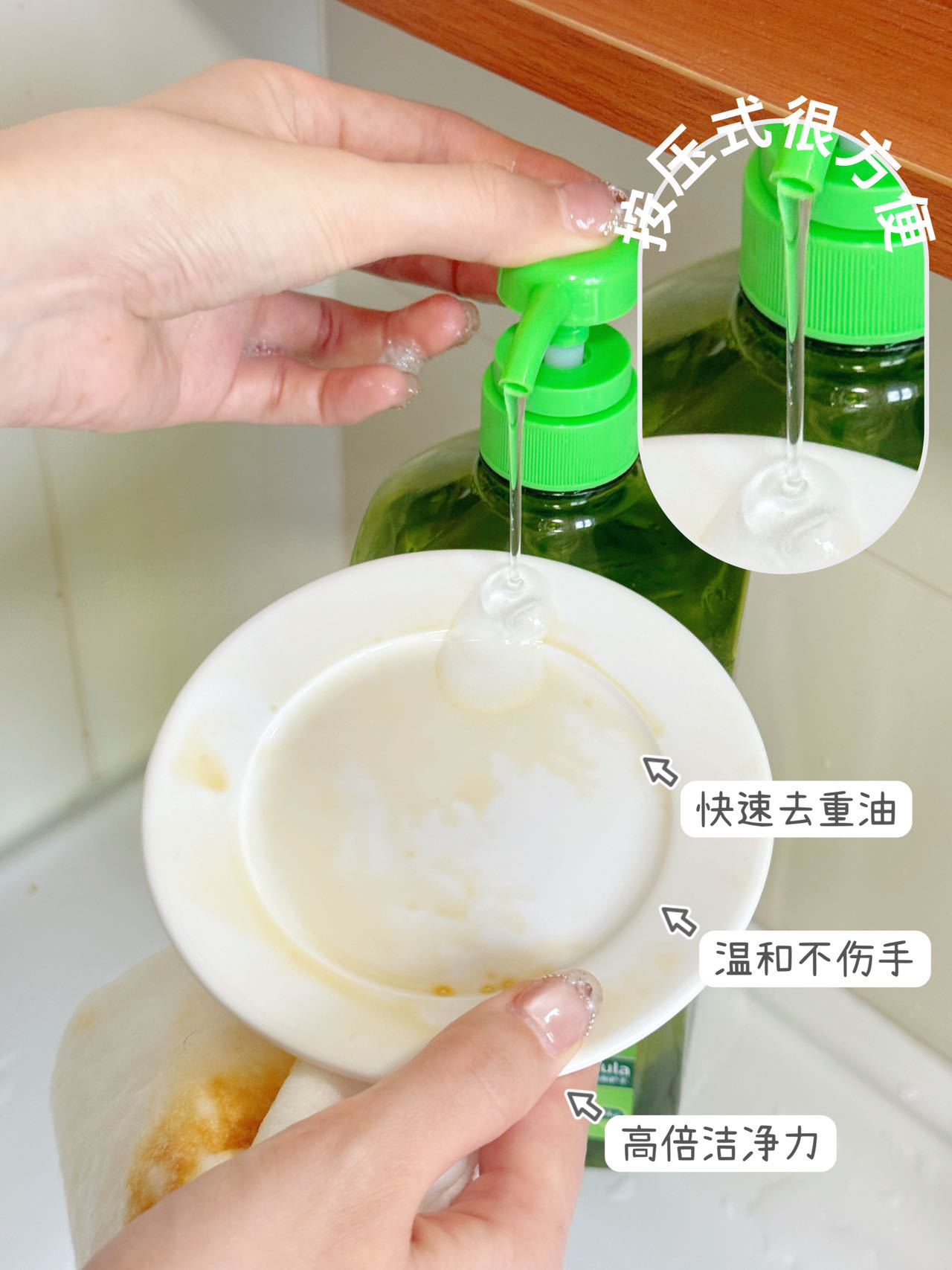 🍃它采用环保配方 温和和不伤手,而且极易冲洗 让你的厨房洗后焕然一新🌟 🍲它的去污能力真的是一级棒! 无论是油渍饭渍菜渍 还是咖啡渍茶渍都能轻松解决!