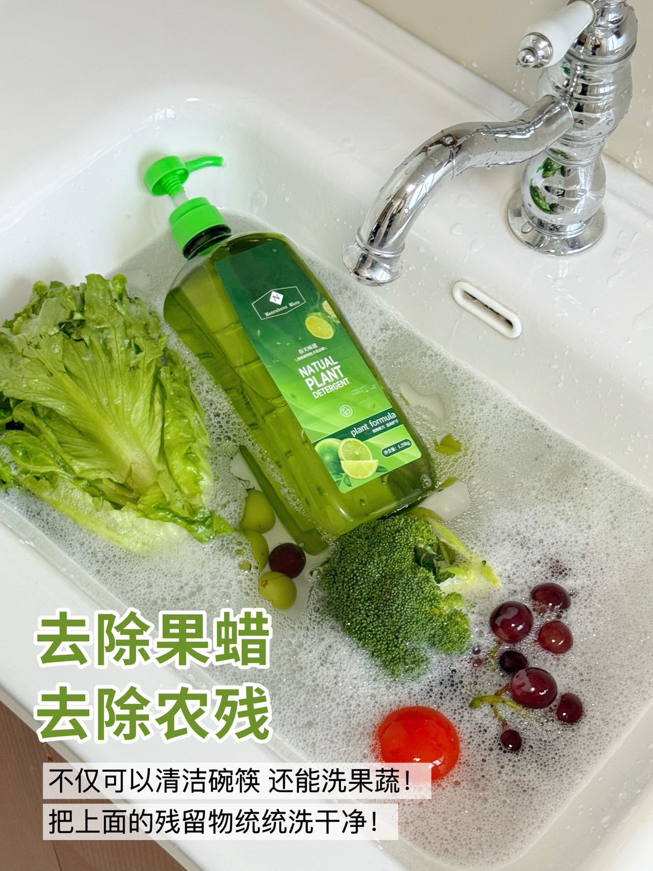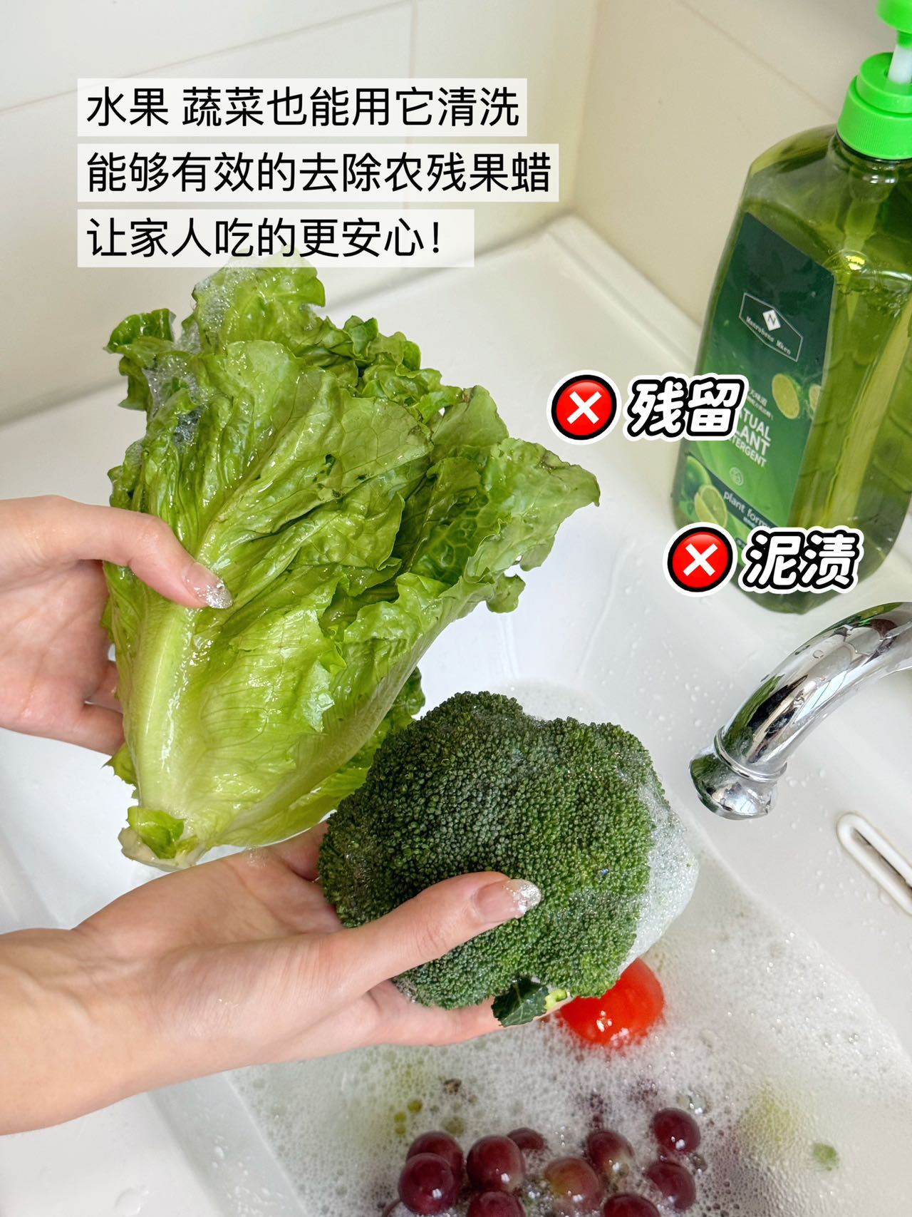 不仅可以清洁碗筷哦!! 平时各种🍎水果、蔬菜🥬 也能用它清洗一遍 能够有效的去除上面的农残、果蜡 家里有老人小孩吃的更放心!