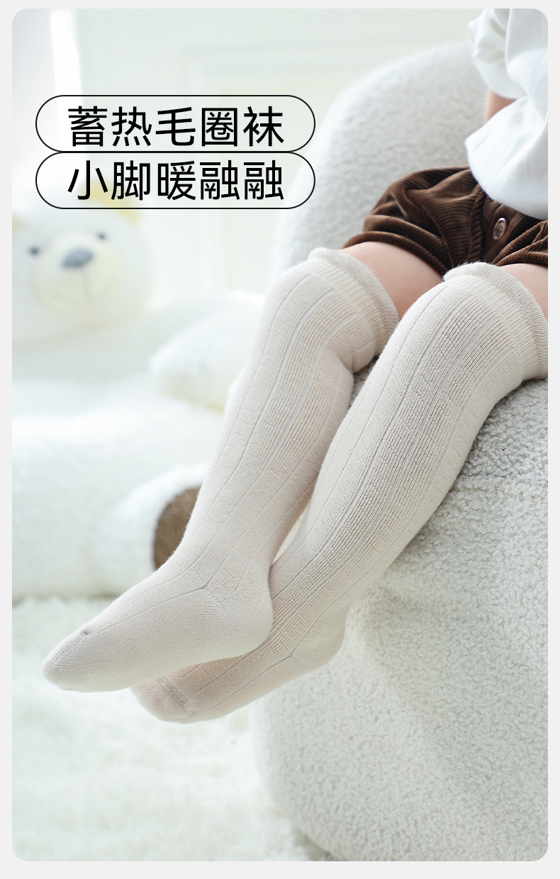 【母婴服配】EMXEE嫚熙儿童袜子秋冬男女童袜宝宝婴儿春秋款纯色过膝袜三双装