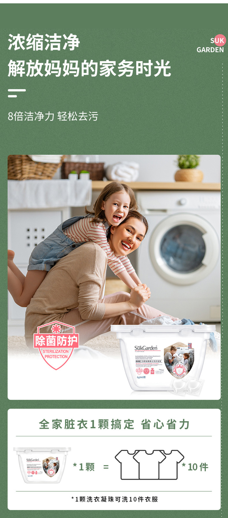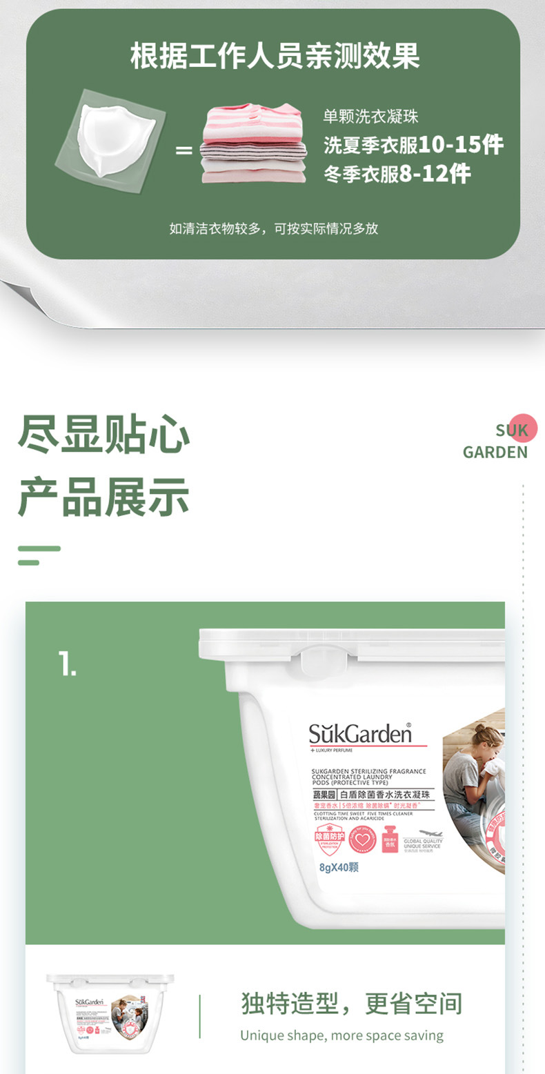 「一桶40颗装!5倍浓缩」蔬果园香水浓缩洗衣凝珠40颗 洁净衣物护色留香居家日用清洁工具