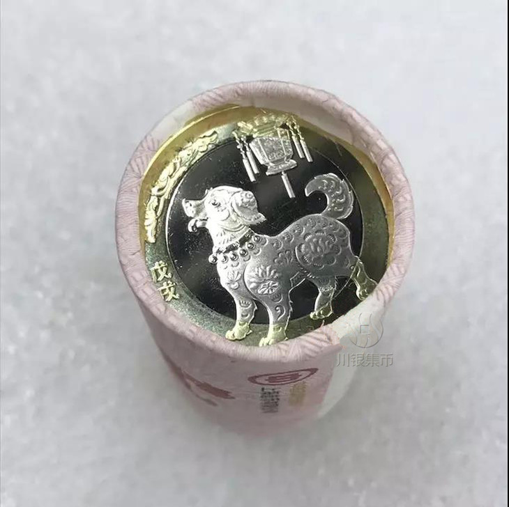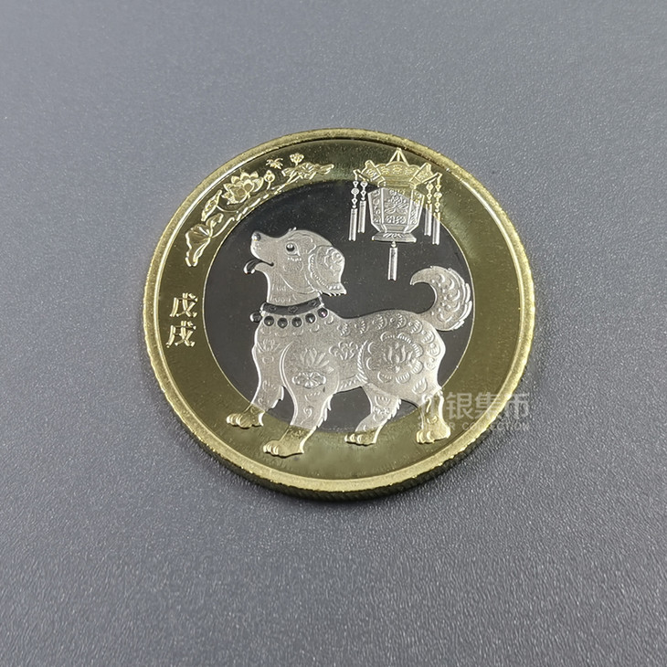 背面主景图案:为一只中国传统剪纸艺术与装饰年画元素相结合造型的小花狗,其上方为宫灯和荷花图案,币面左侧刊“戊戌”字样。