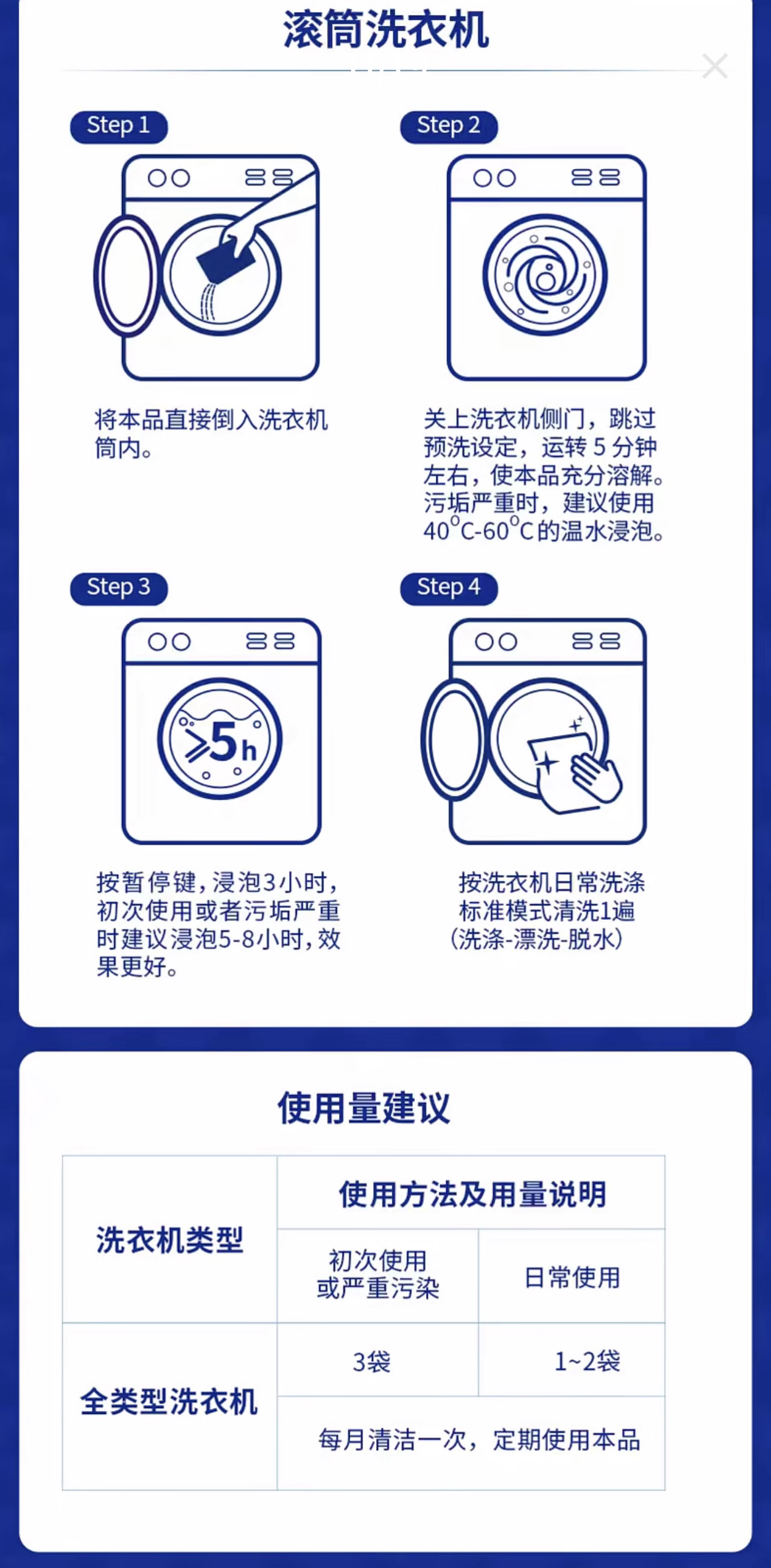 【刮码发货】水卫仕水卫士洗衣机槽清洁剂125克/袋*6/盒