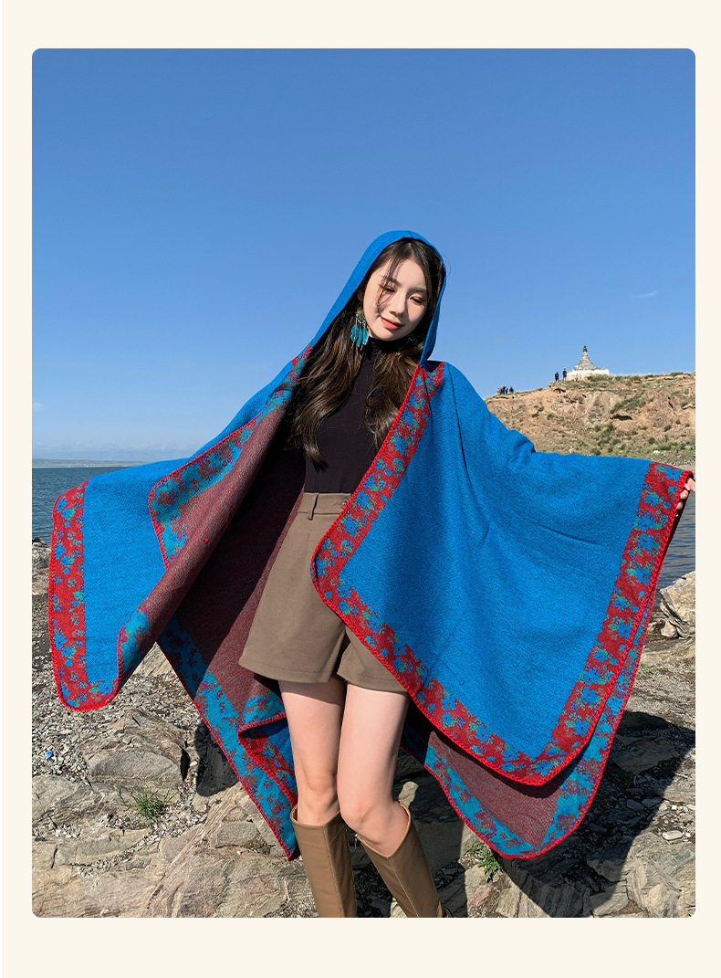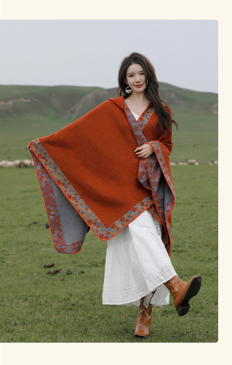 【民族风红色披肩,防风防寒】秋日的气息,红色流转。似火的围巾,热销披肩,异域风情披风,独特而不失高贵。保暖防风,美丽抗寒,为你带来温暖和舒适!