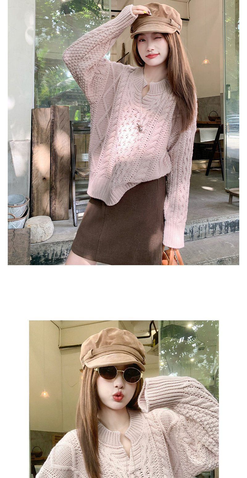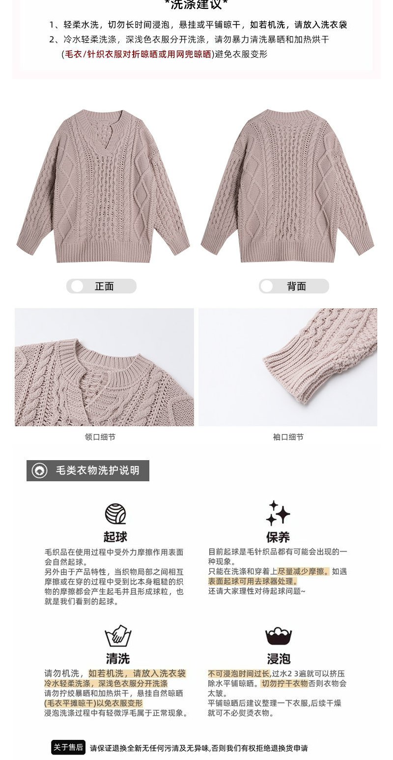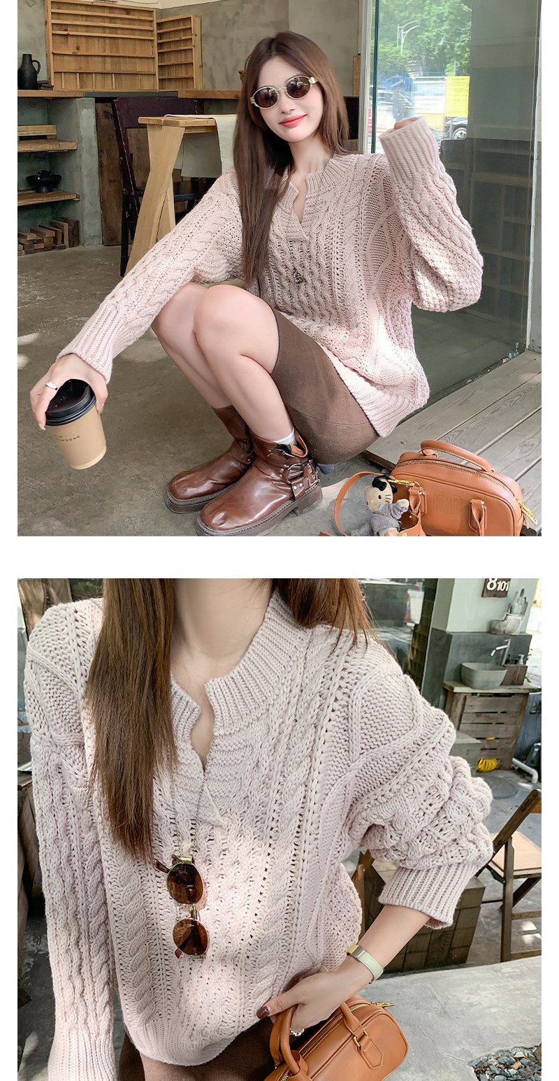 【179元任选2件】现货!韩系v领粉色镂空针织衫