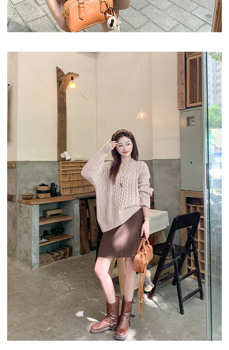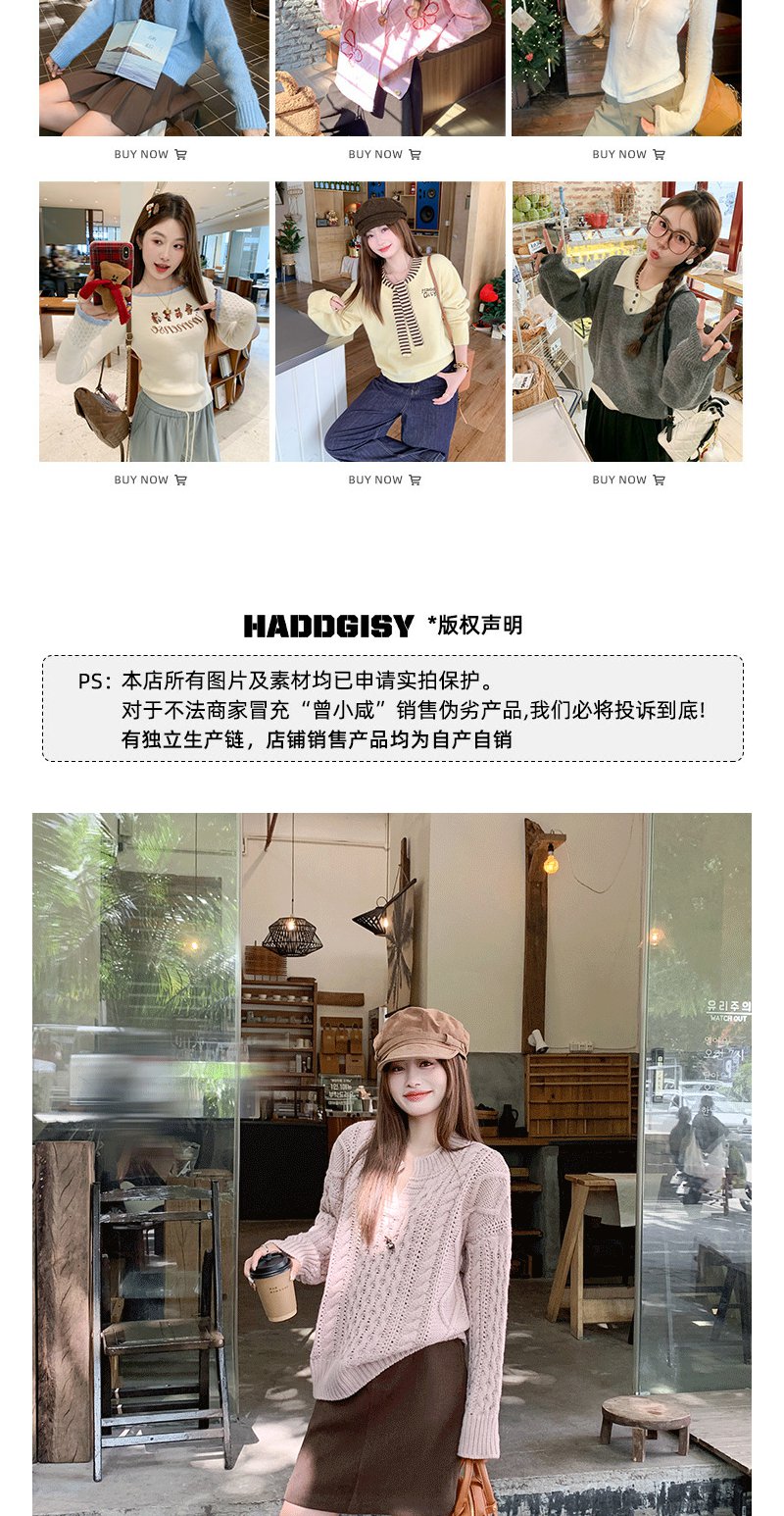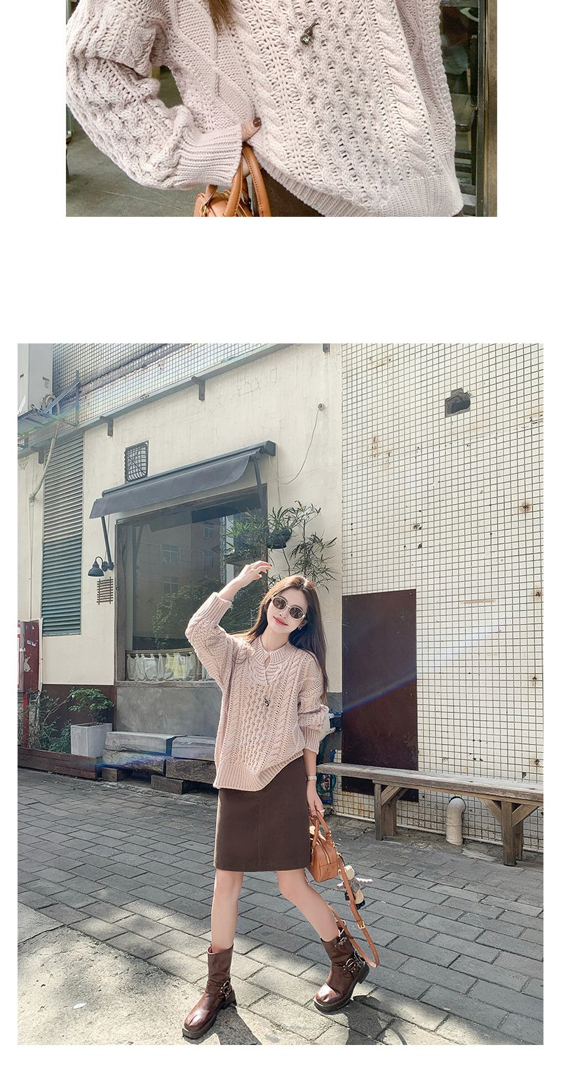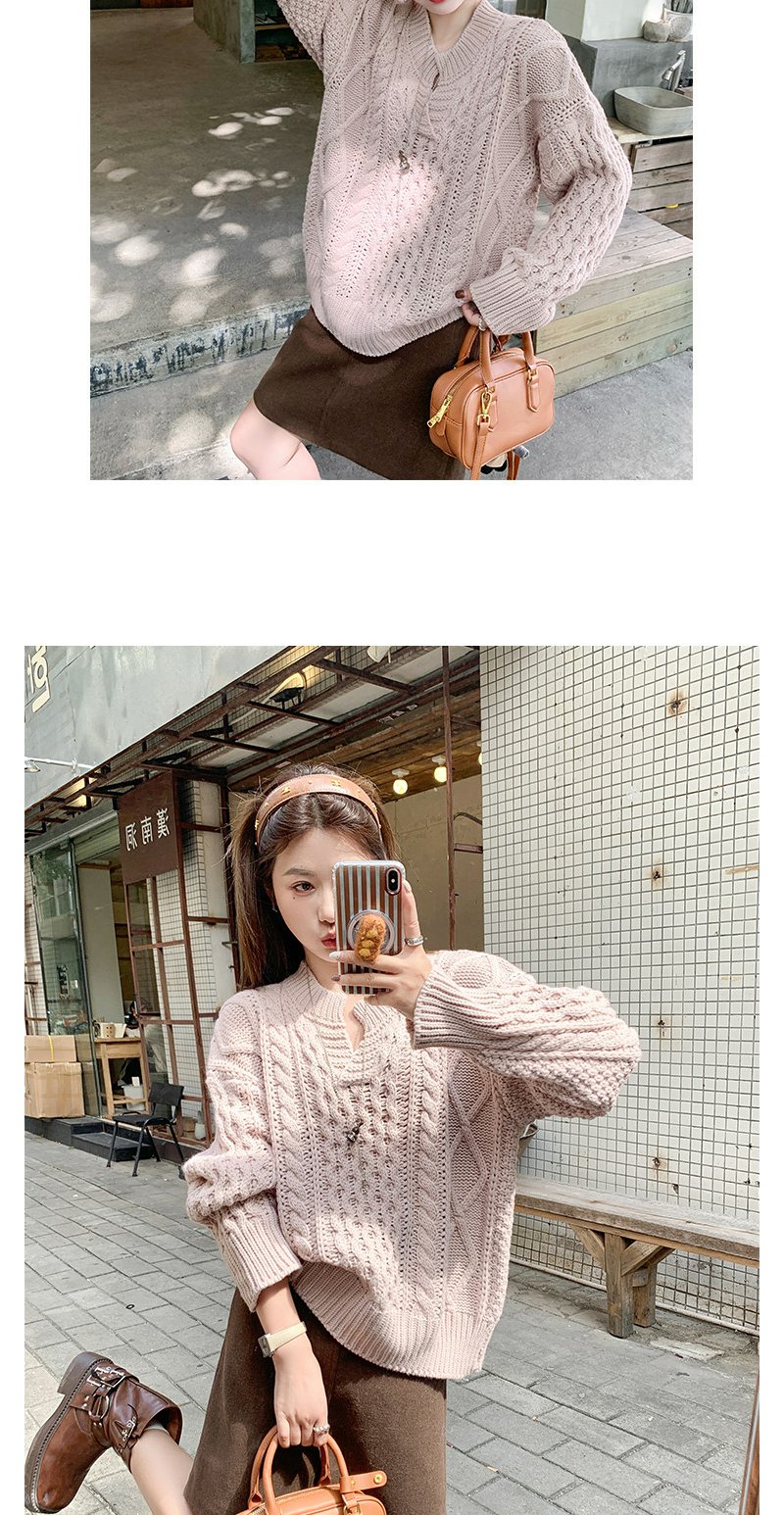 【179元任选2件】现货!韩系v领粉色镂空针织衫