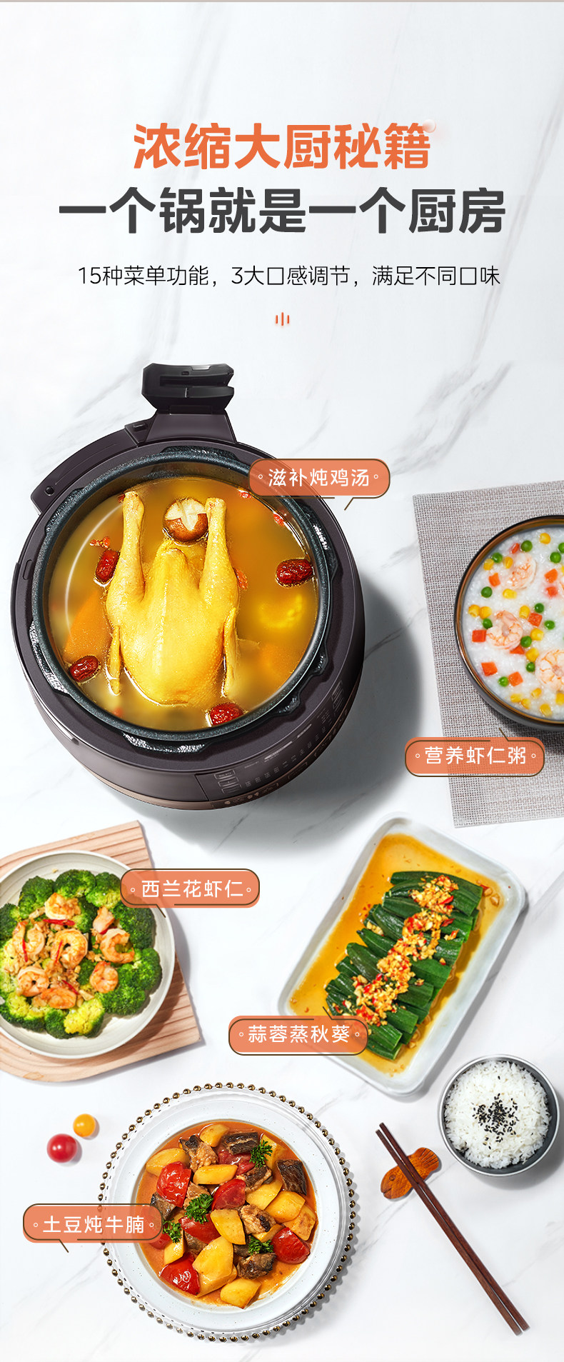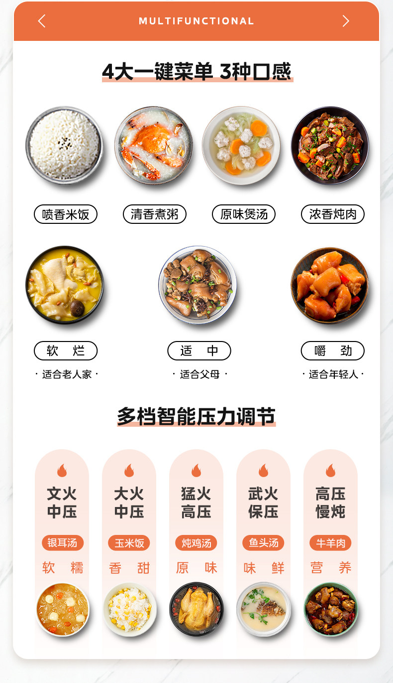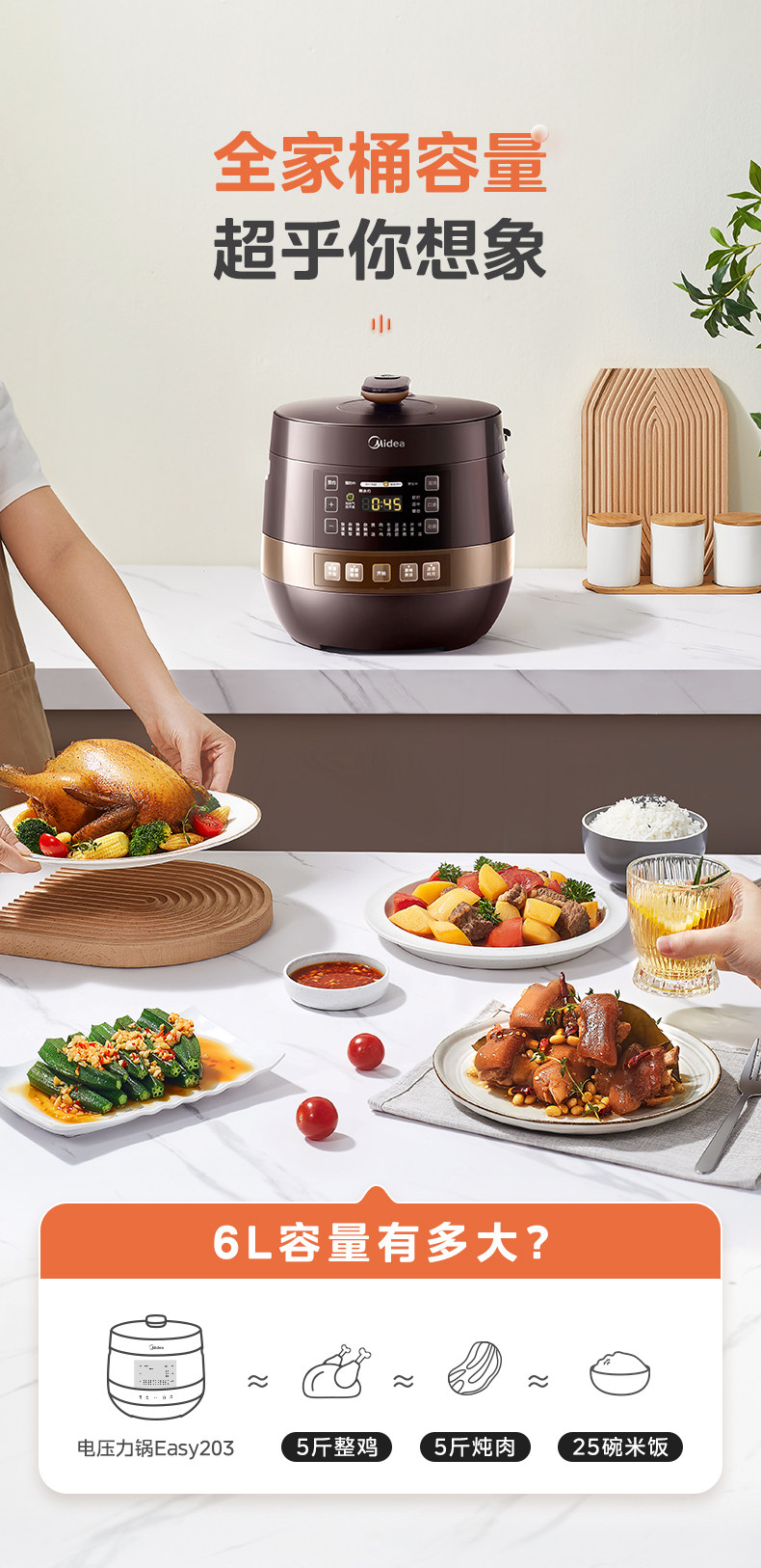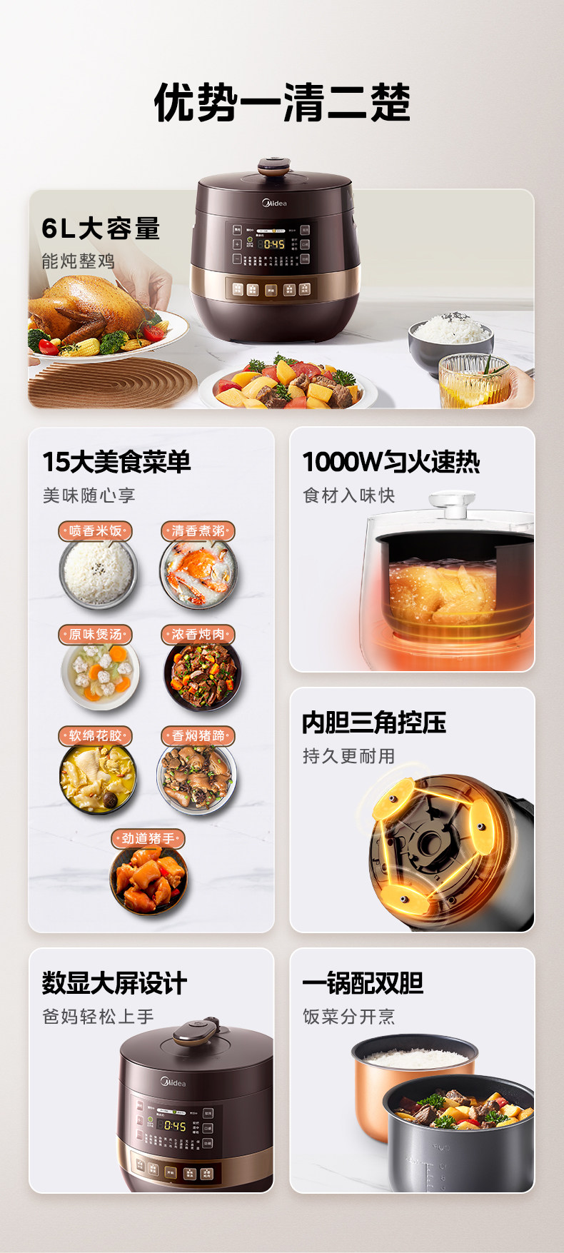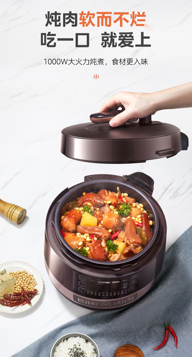 美的电压力锅家用双胆高压锅饭煲大容量8人6L智能多功能官方正品