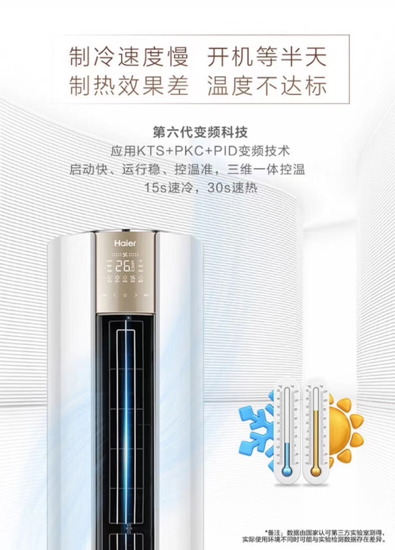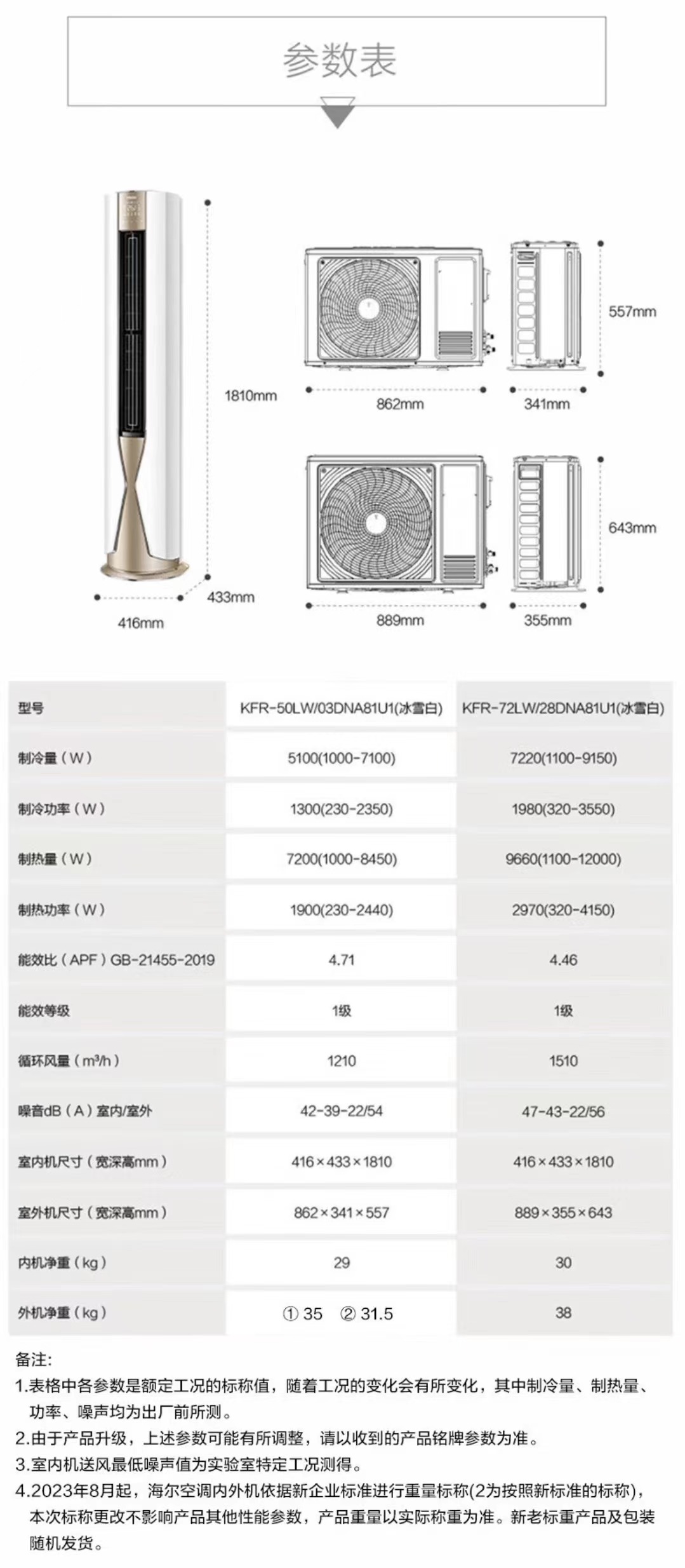 LR 海尔三匹柜式变频空调KFR-72LW/28DNA81U1(冰雪白)