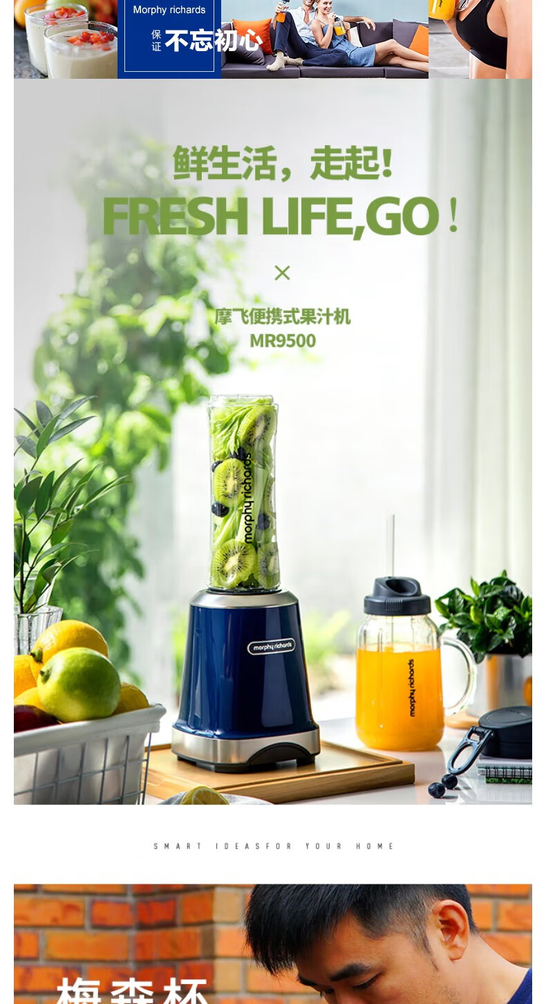 【小家电】摩飞便携式榨汁机多功能家用电动水果榨汁杯家用料理打果汁搅拌机MR9500HF