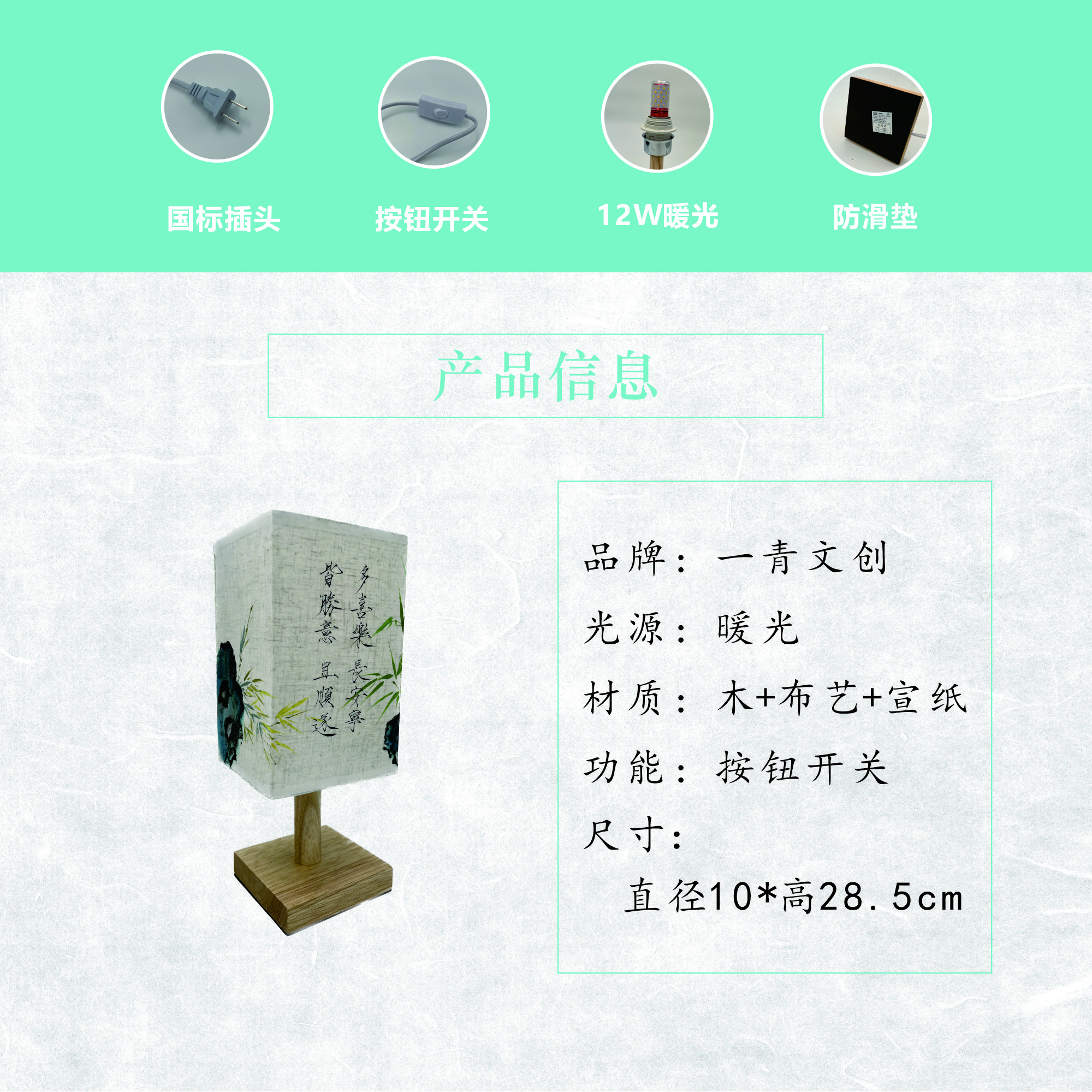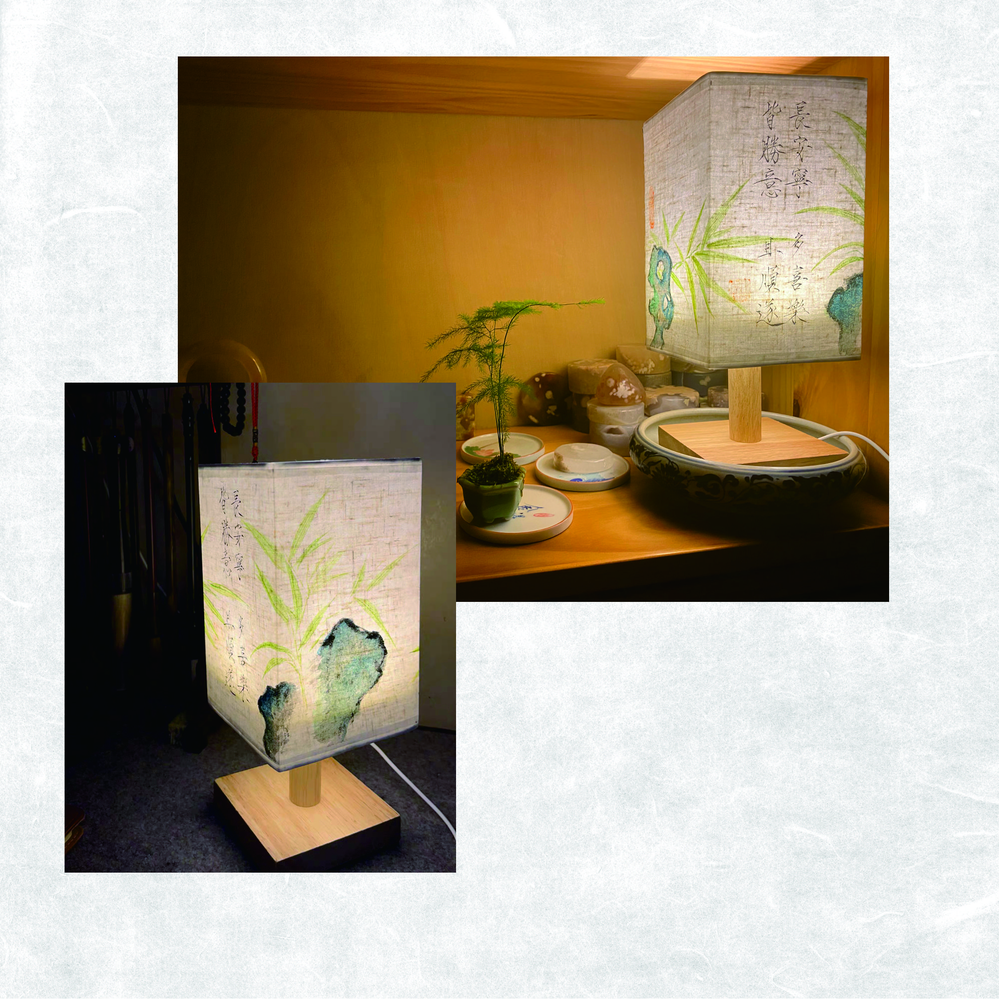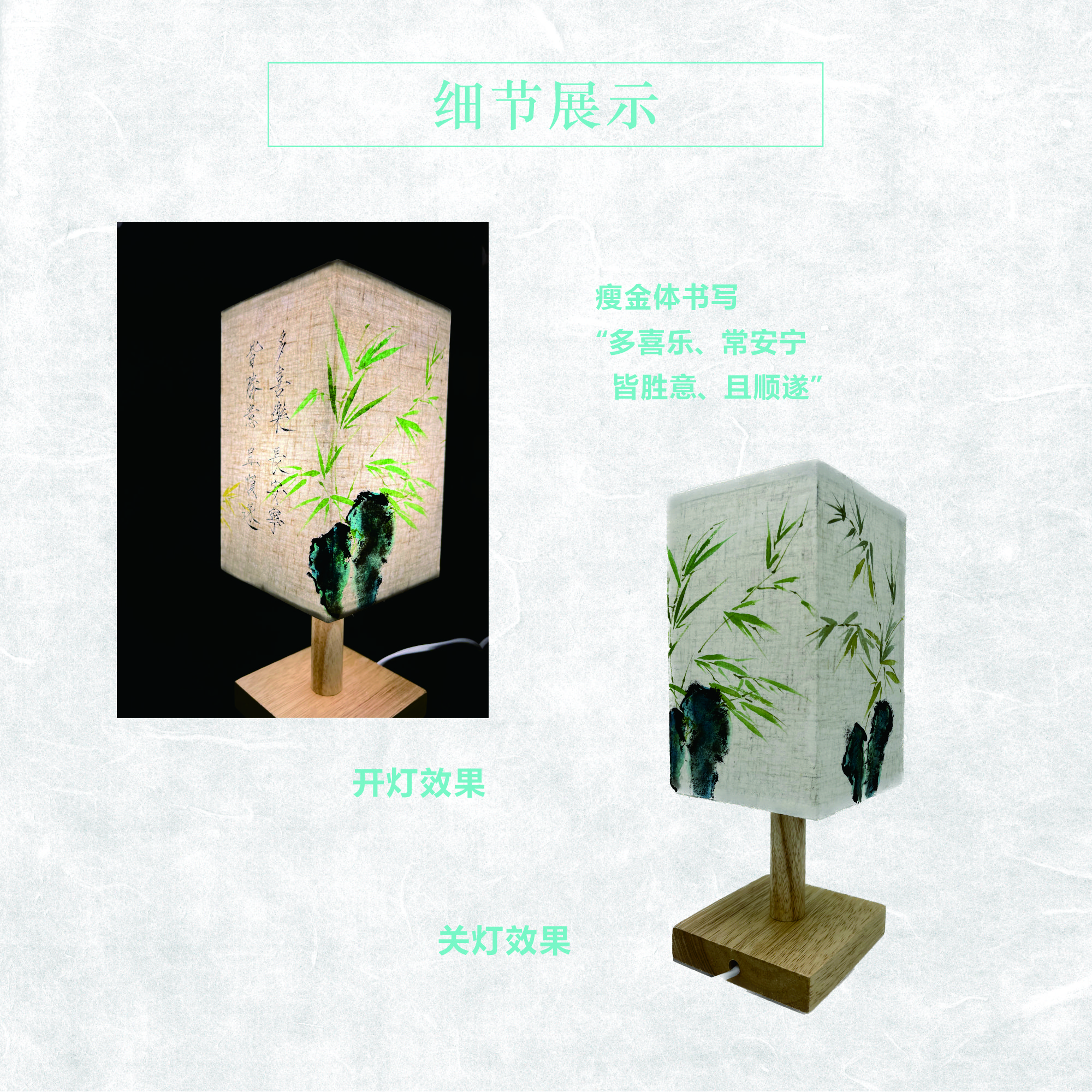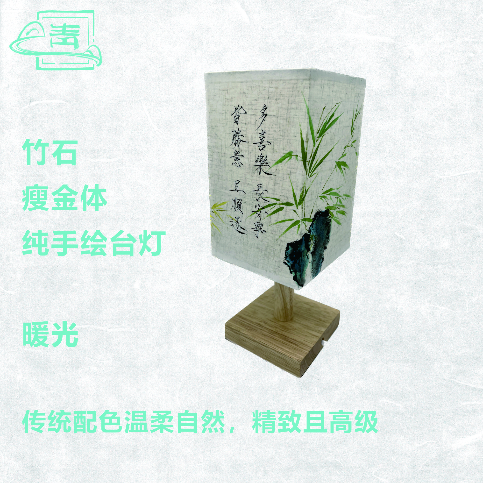 竹石瘦金体款手绘台灯 传统设计 简约古风