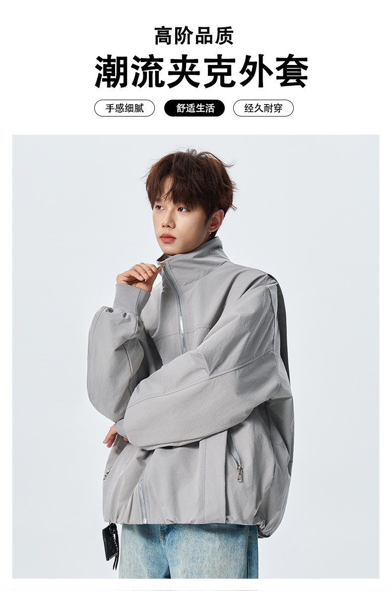 半身缘男装 春季纯色立领轻量化通勤夹克外套261112U01310234