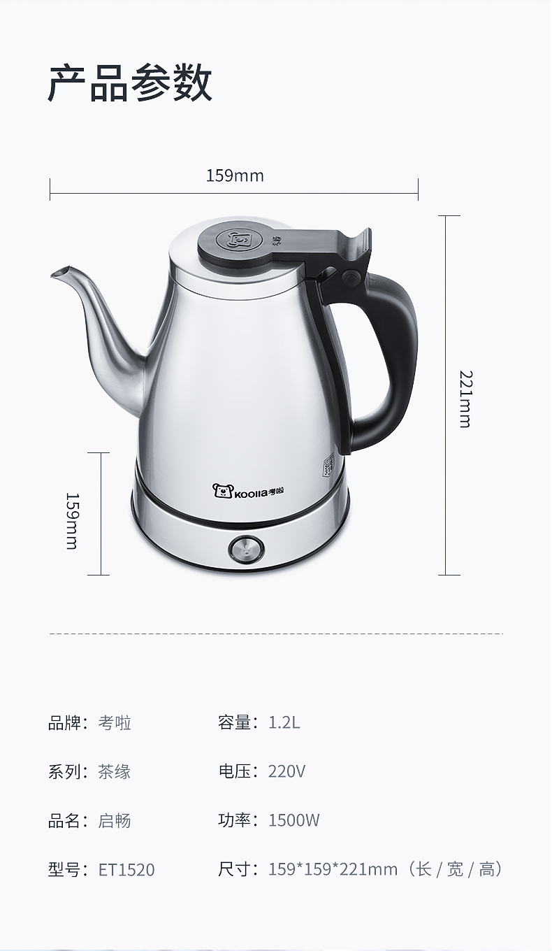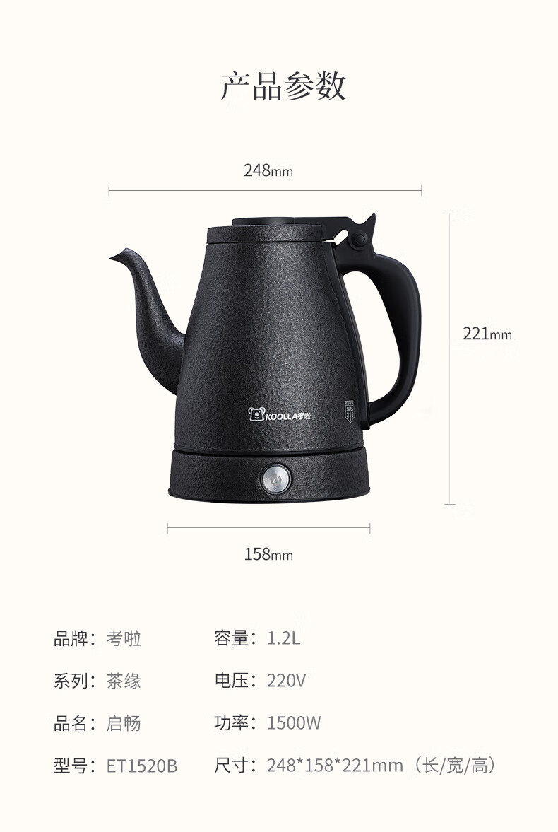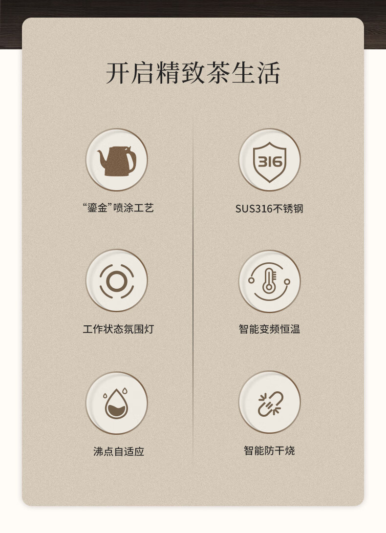 考啦 智能变频恒温电热水壶一键智能控制茶台烧水壶家用保温煮水壶电茶壶食品级316不锈钢 ET1520(一键智控)【不支持补差,非质量问题不退不换】S