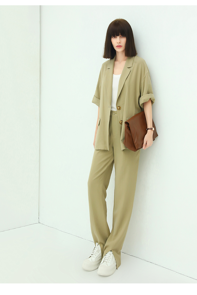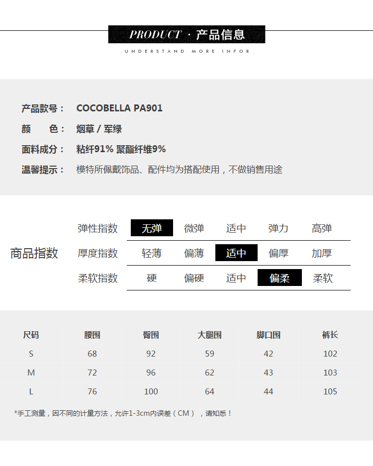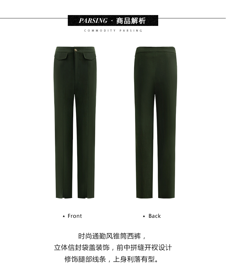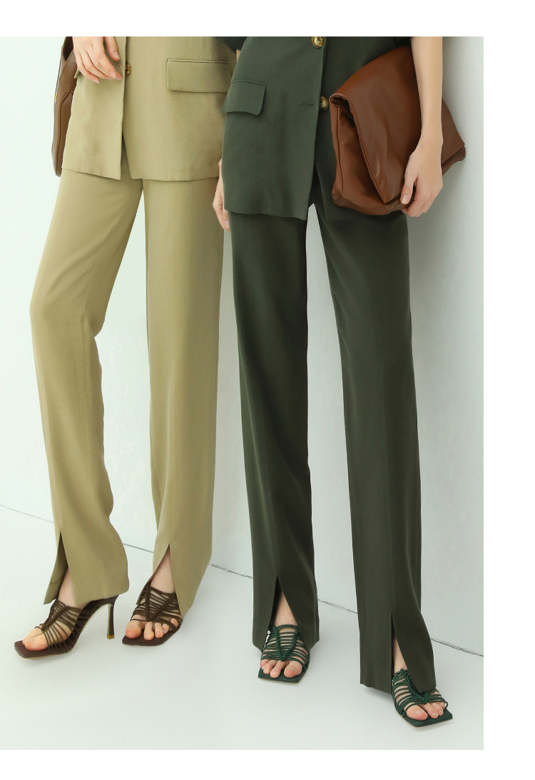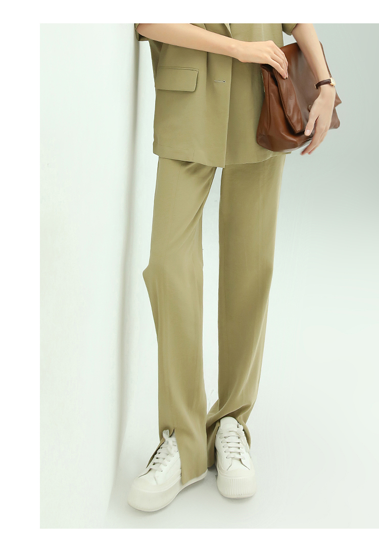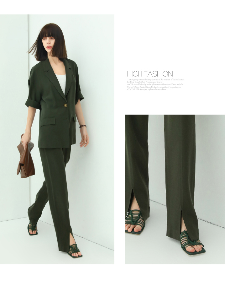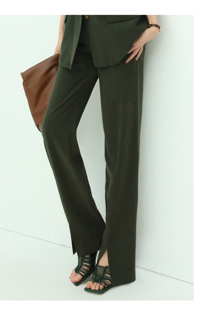 COCOBELLA时尚通勤前开衩西裤女舒适休闲直筒裤高腰长裤PA901
