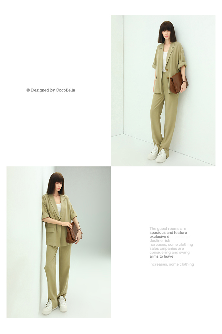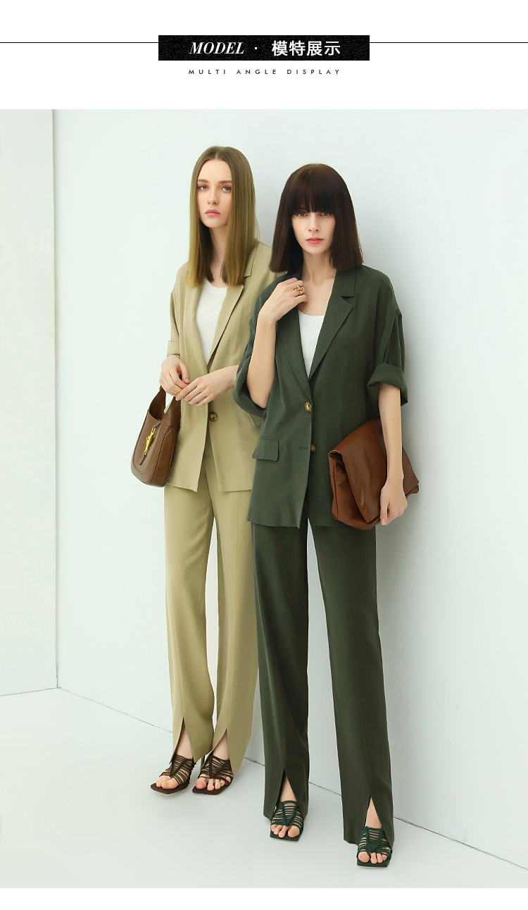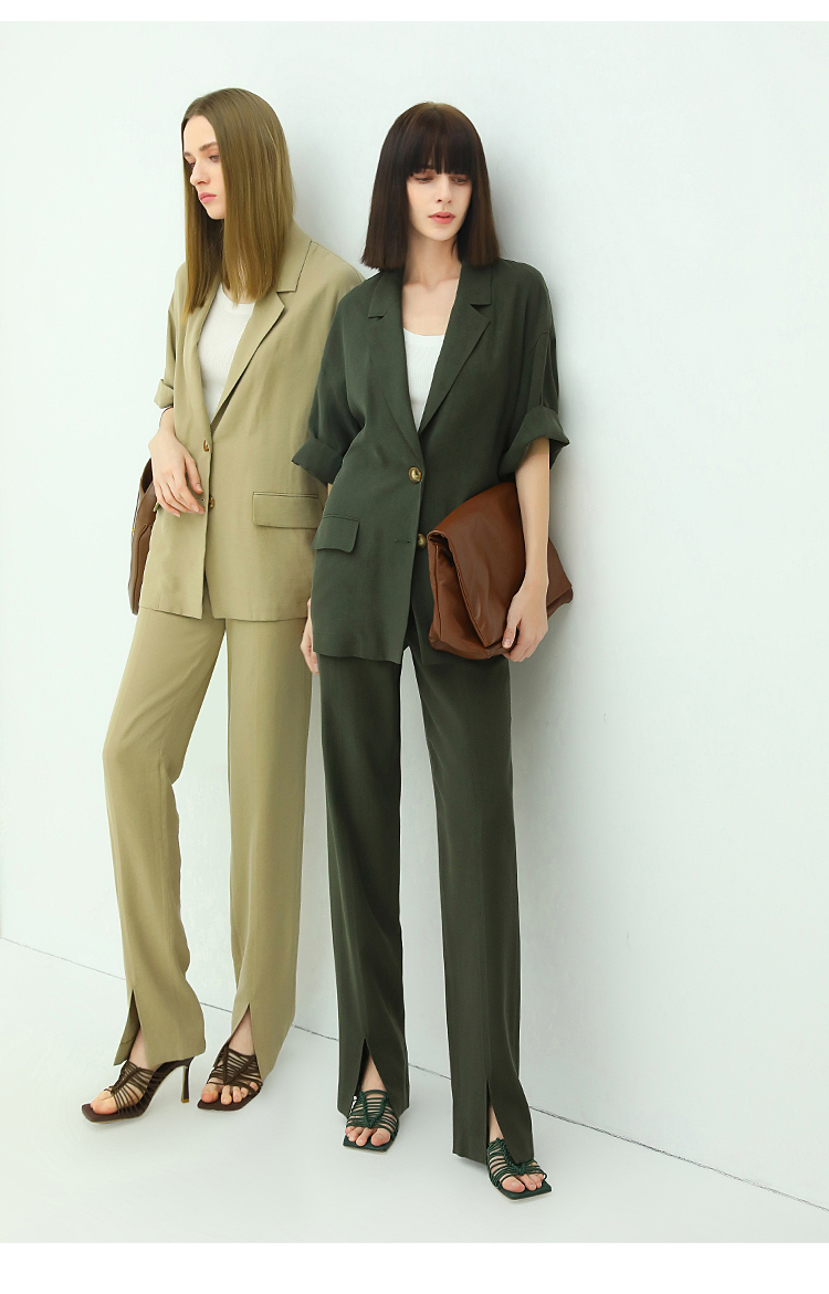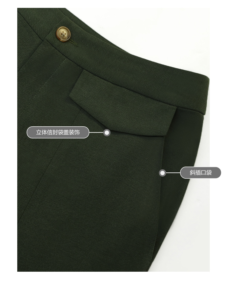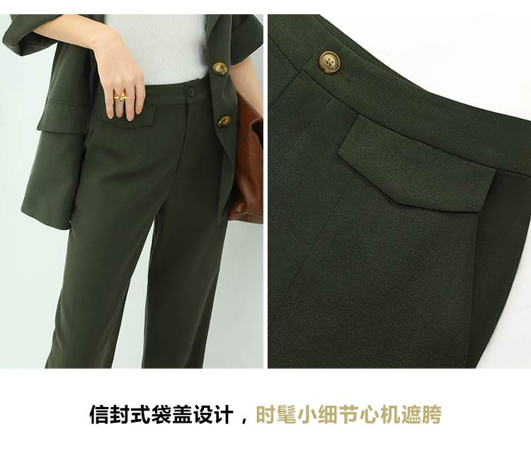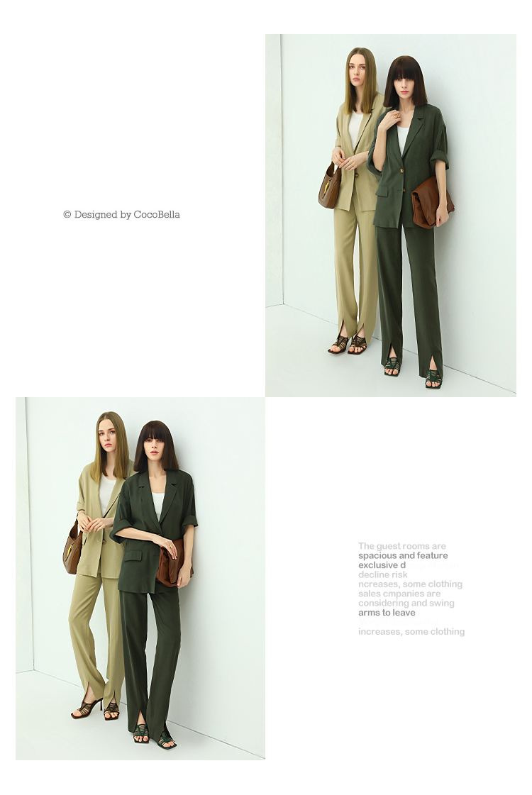 COCOBELLA时尚通勤前开衩西裤女舒适休闲直筒裤高腰长裤PA901