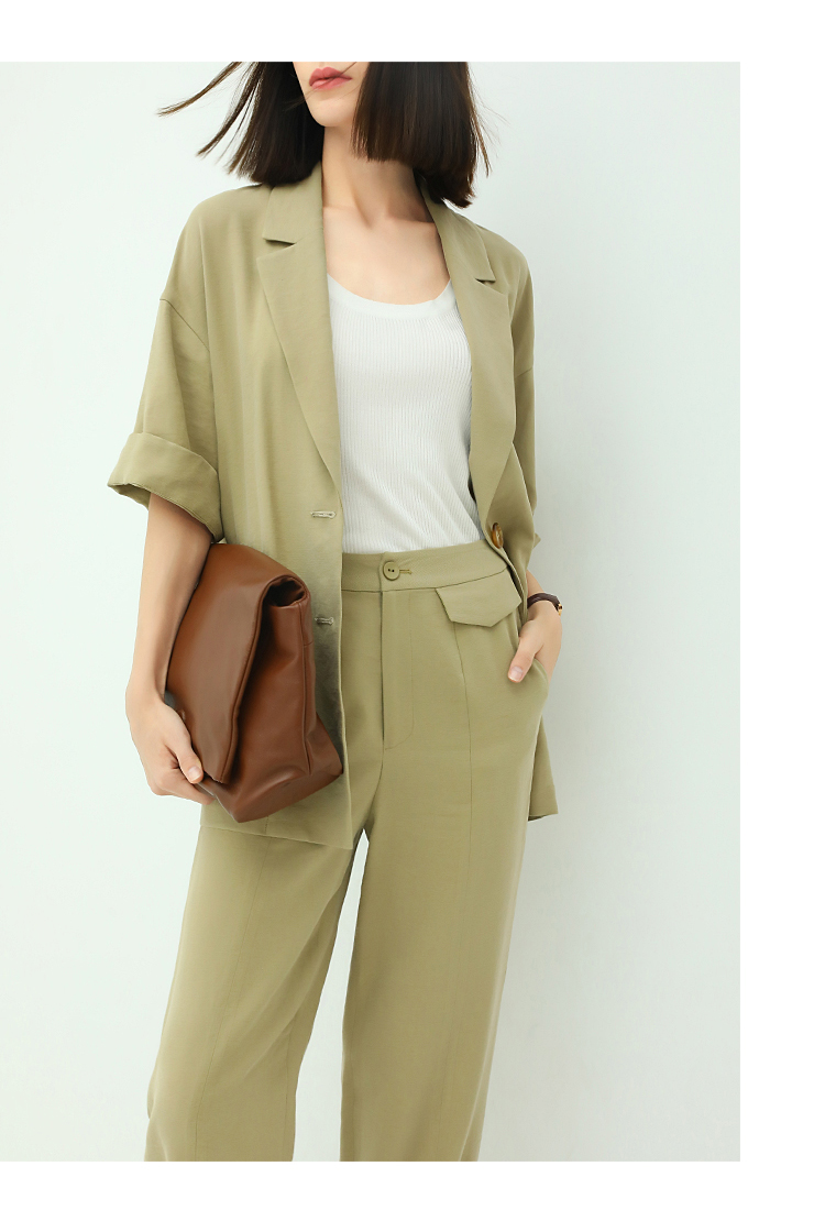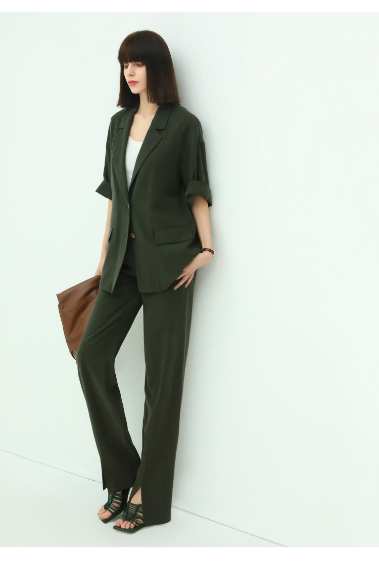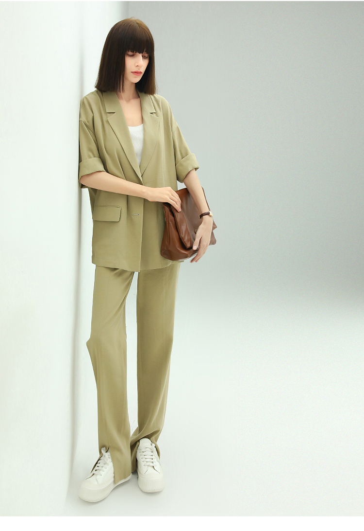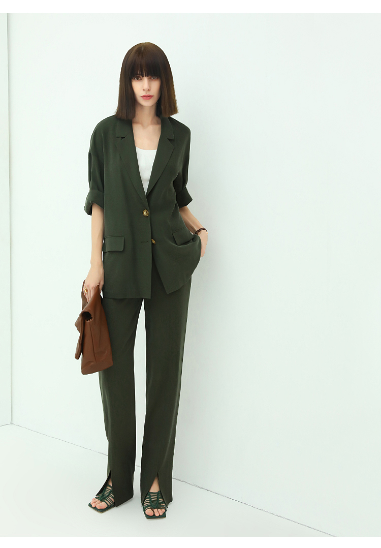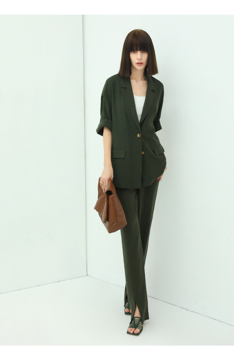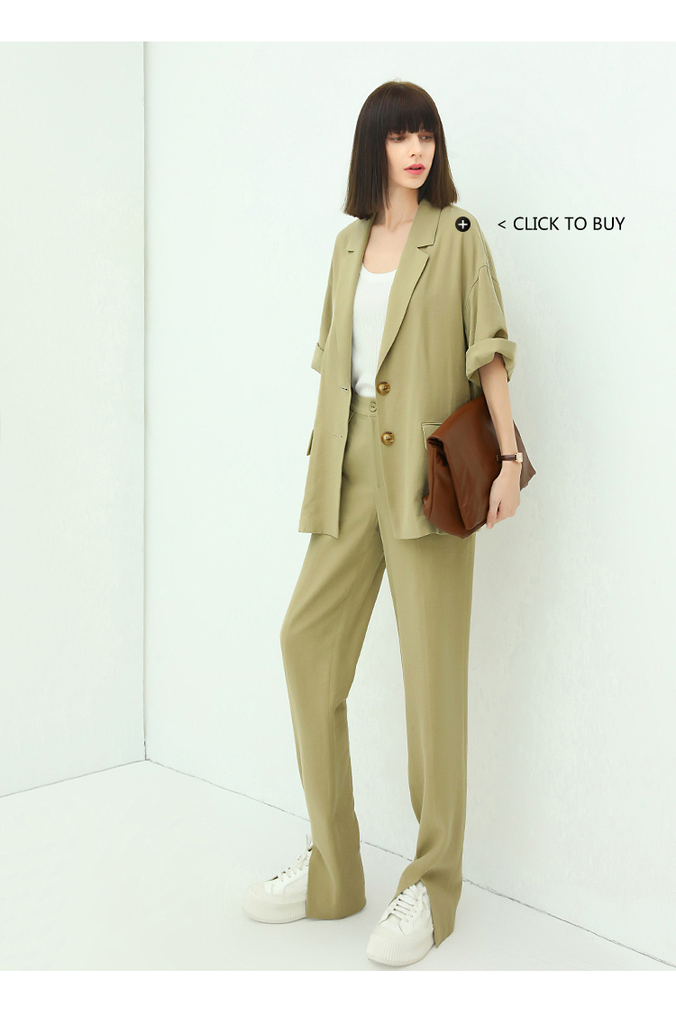 COCOBELLA时尚通勤前开衩西裤女舒适休闲直筒裤高腰长裤PA901