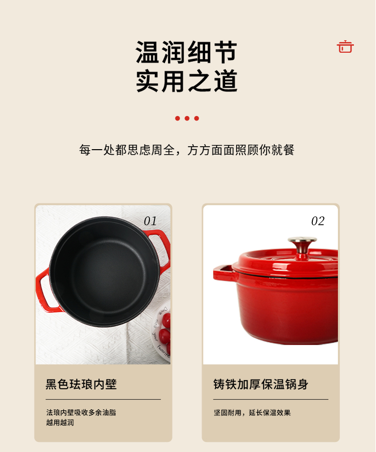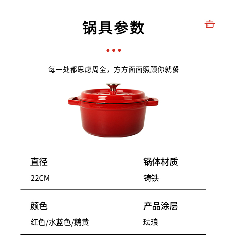 伊弗勒(EFULLOT)EFFE-S309 珐琅铸铁炖锅 红色22cm