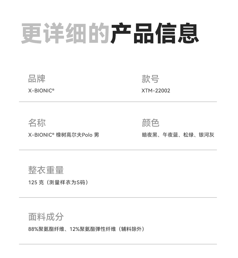 X-BIONIC 橡树高尔夫POLO衫男 泡泡纱肌理城市户外休闲T恤22002