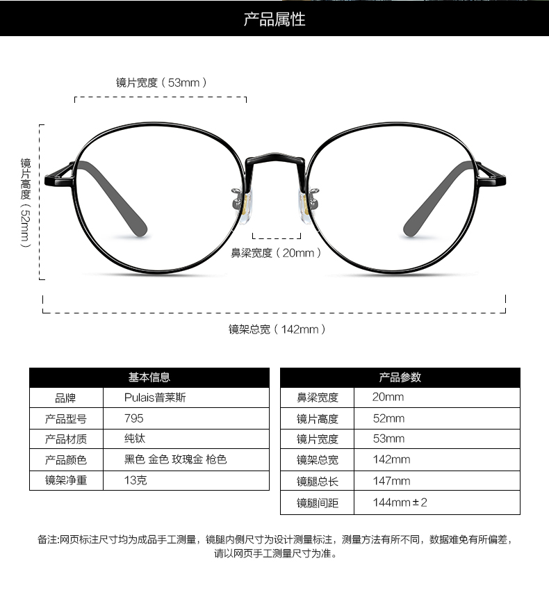 【特价秒杀款】普莱斯PT795 纯钛 圆框 复古文艺 中性