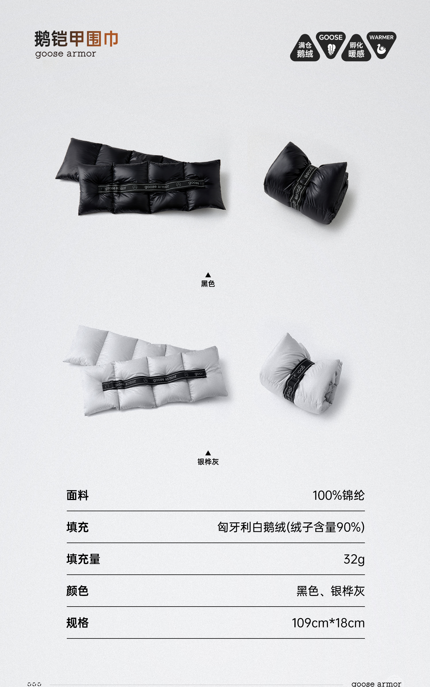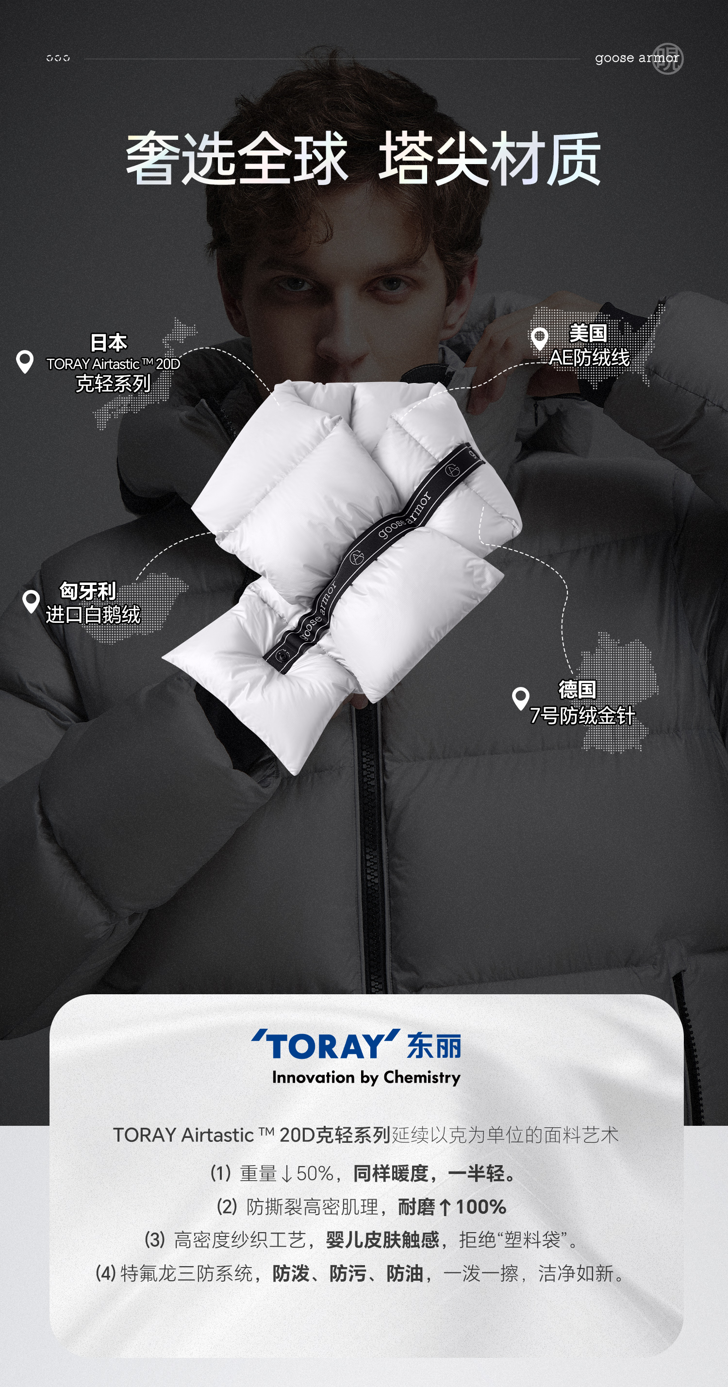 天石羽绒服秋冬新品鹅铠甲鹅绒服机能鹅绒围巾