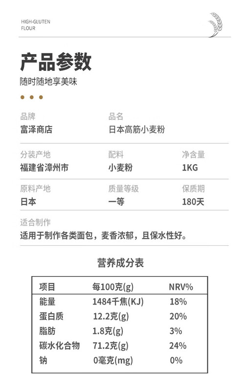 富泽-日本高筋小麦粉1kg/袋
