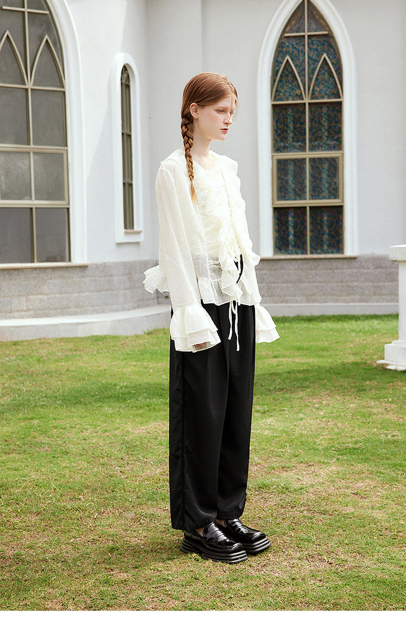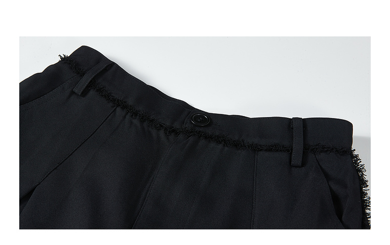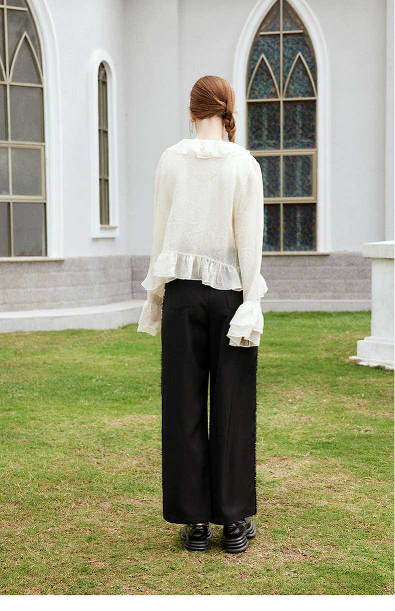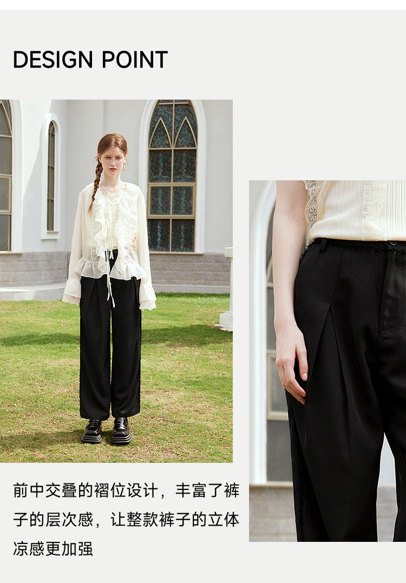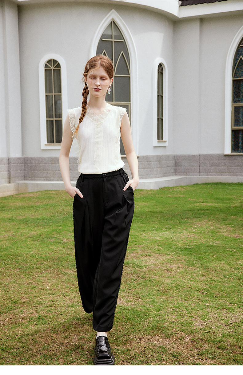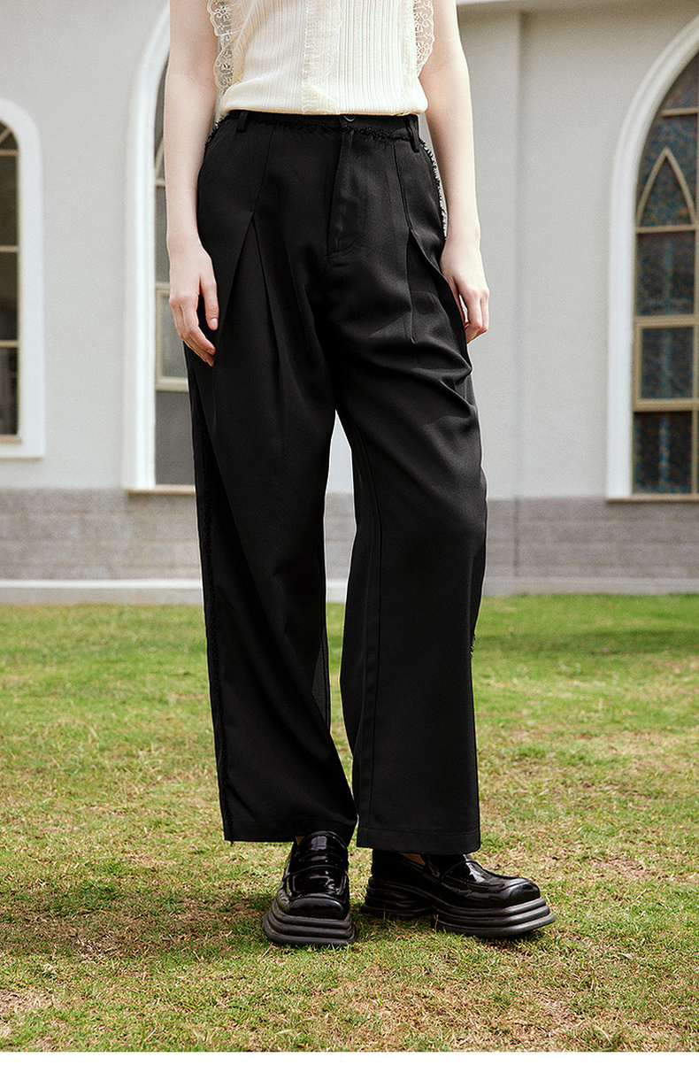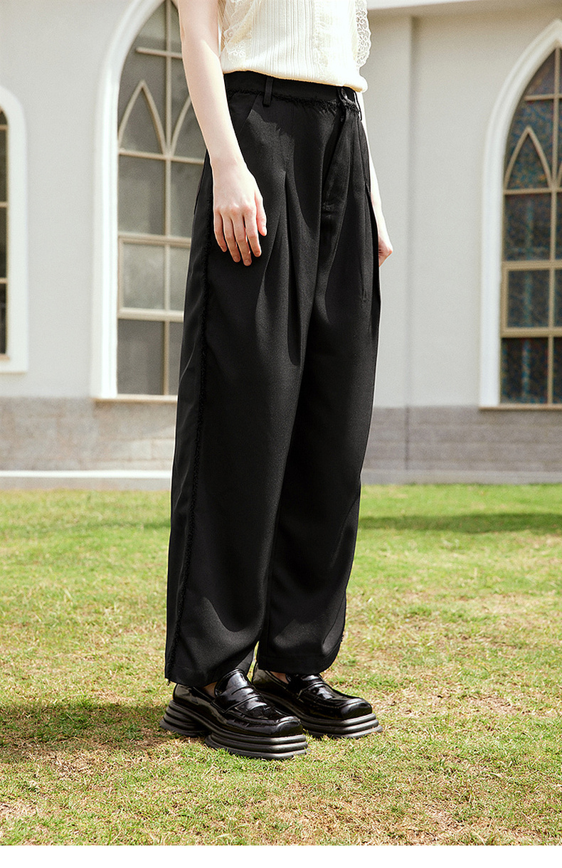 两三事半岛晚歌2024夏季新款简约毛边装饰直筒高腰休闲裤女